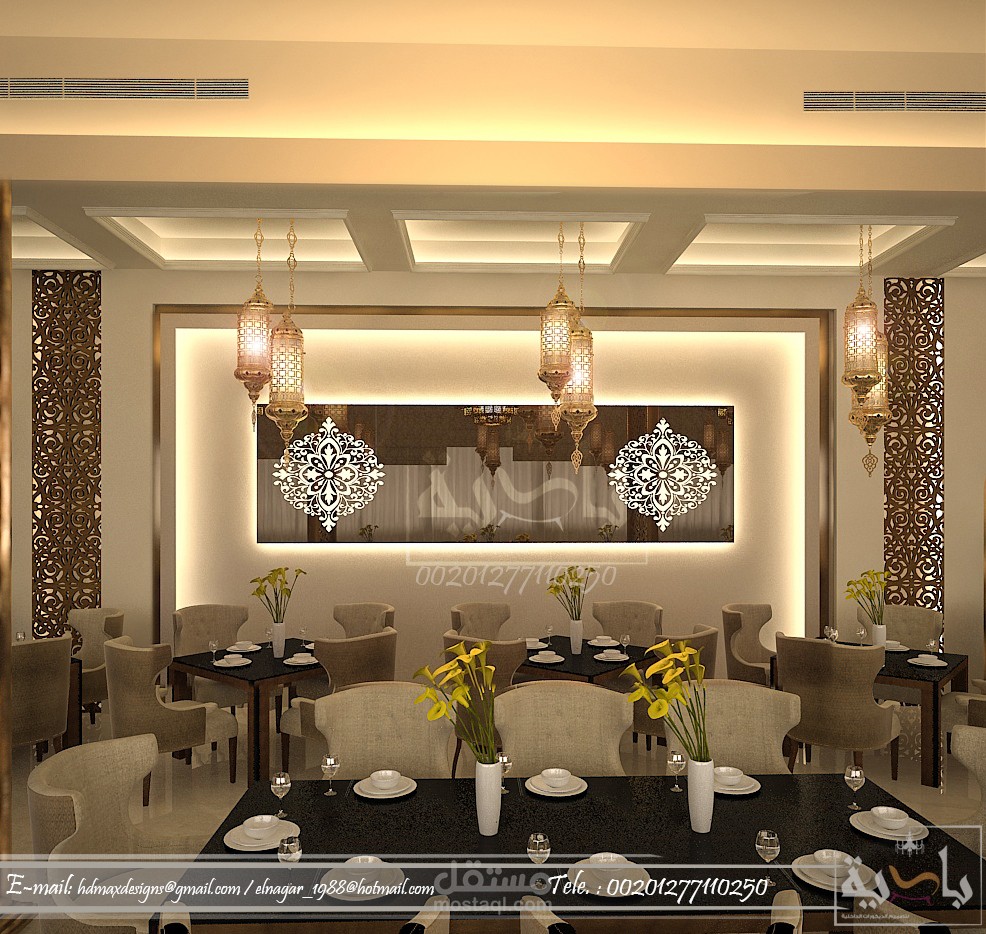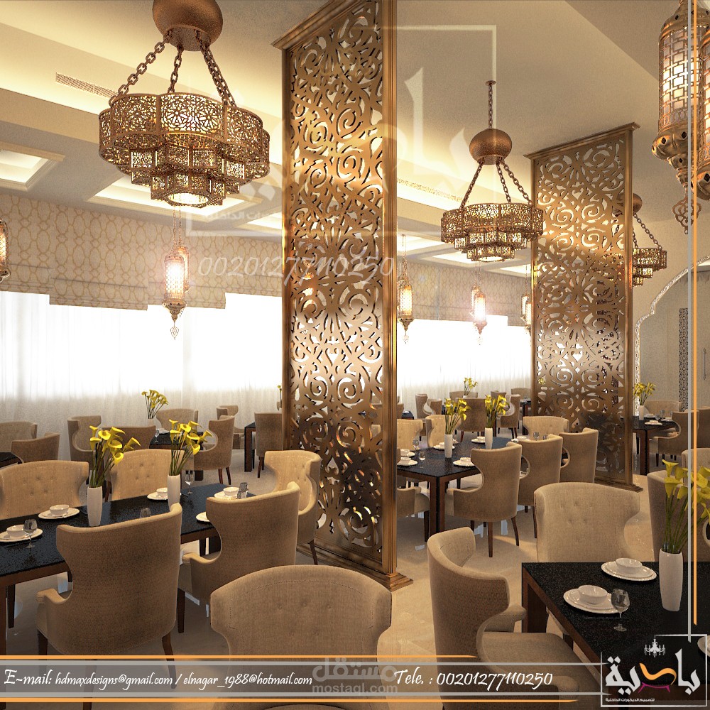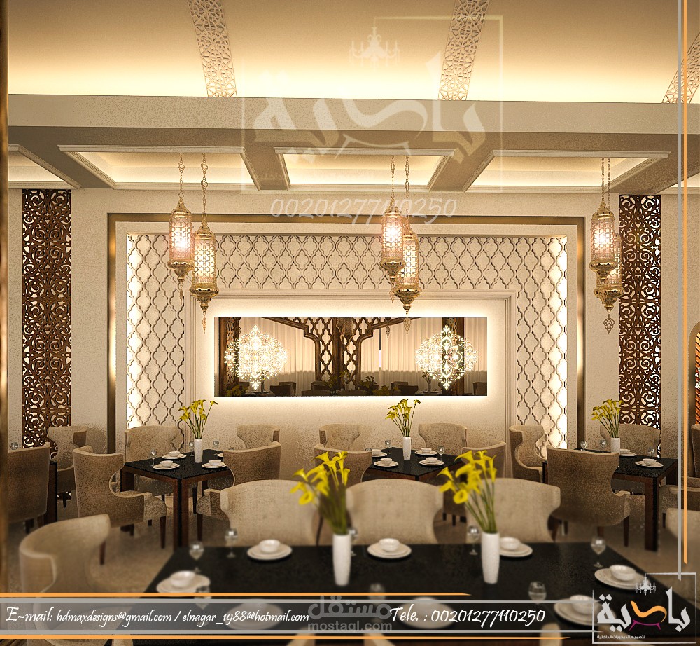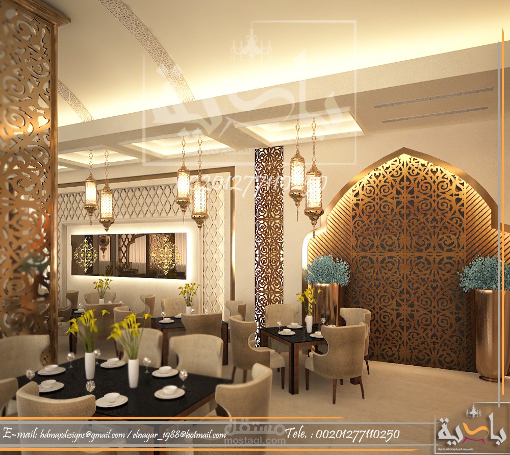 تصميم مطعم بروح الاسلامي بشكله الحديث مع طابع الفخامة بطلب من العميل في الممكلة العربية السعودية