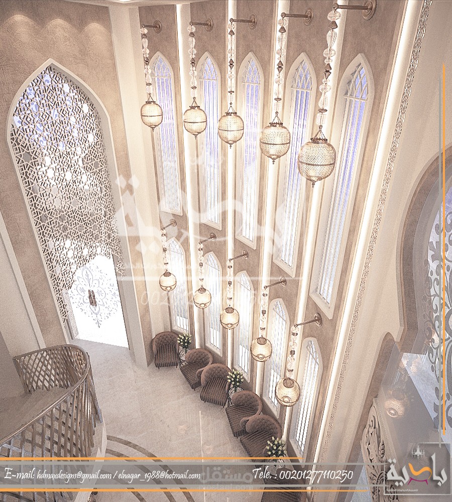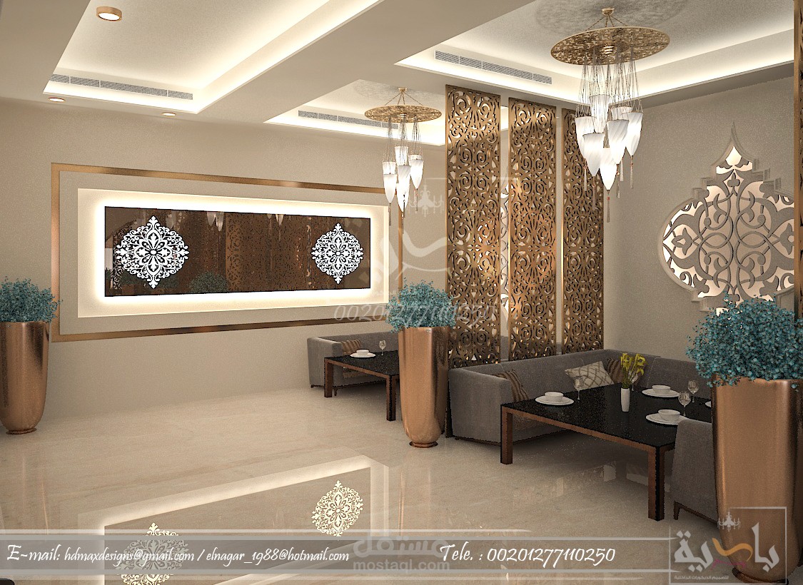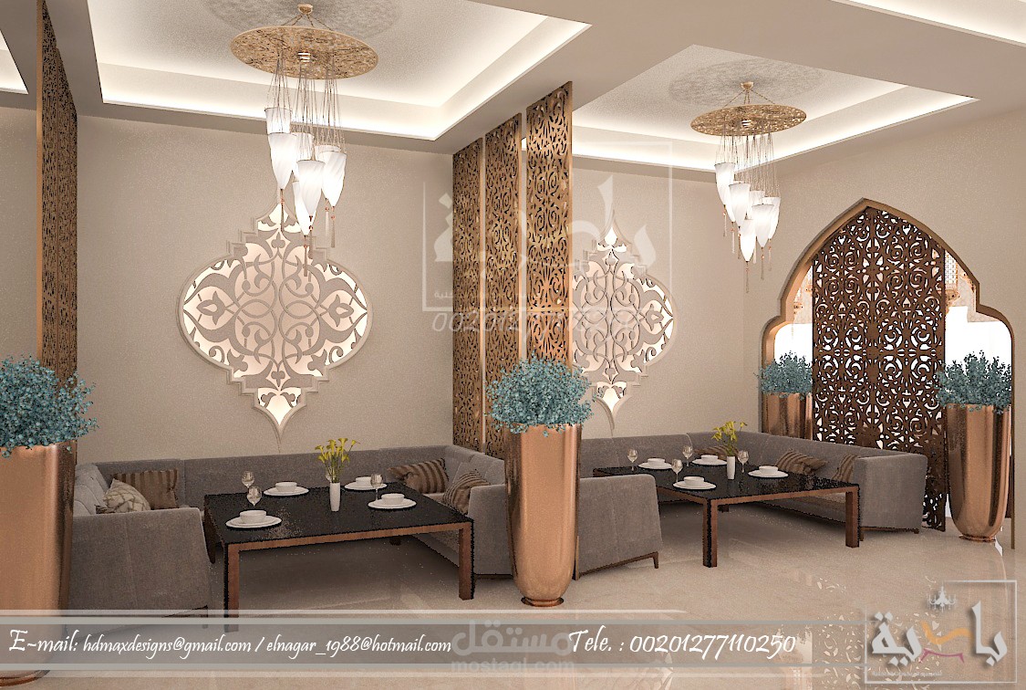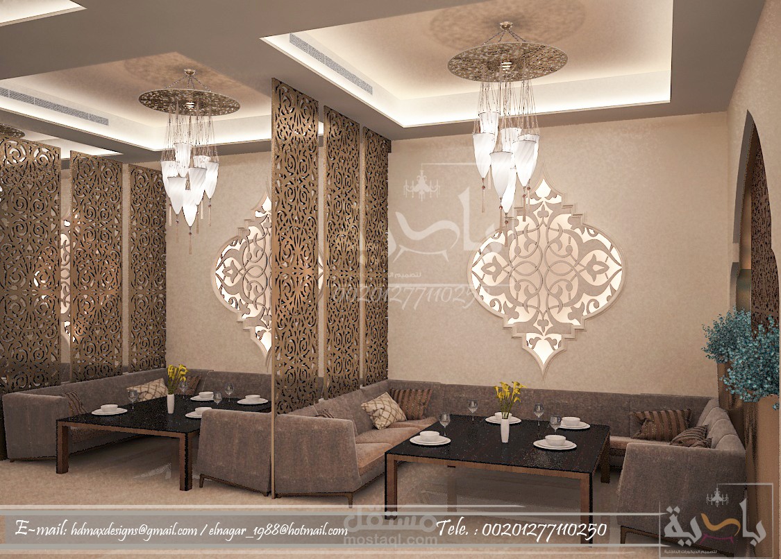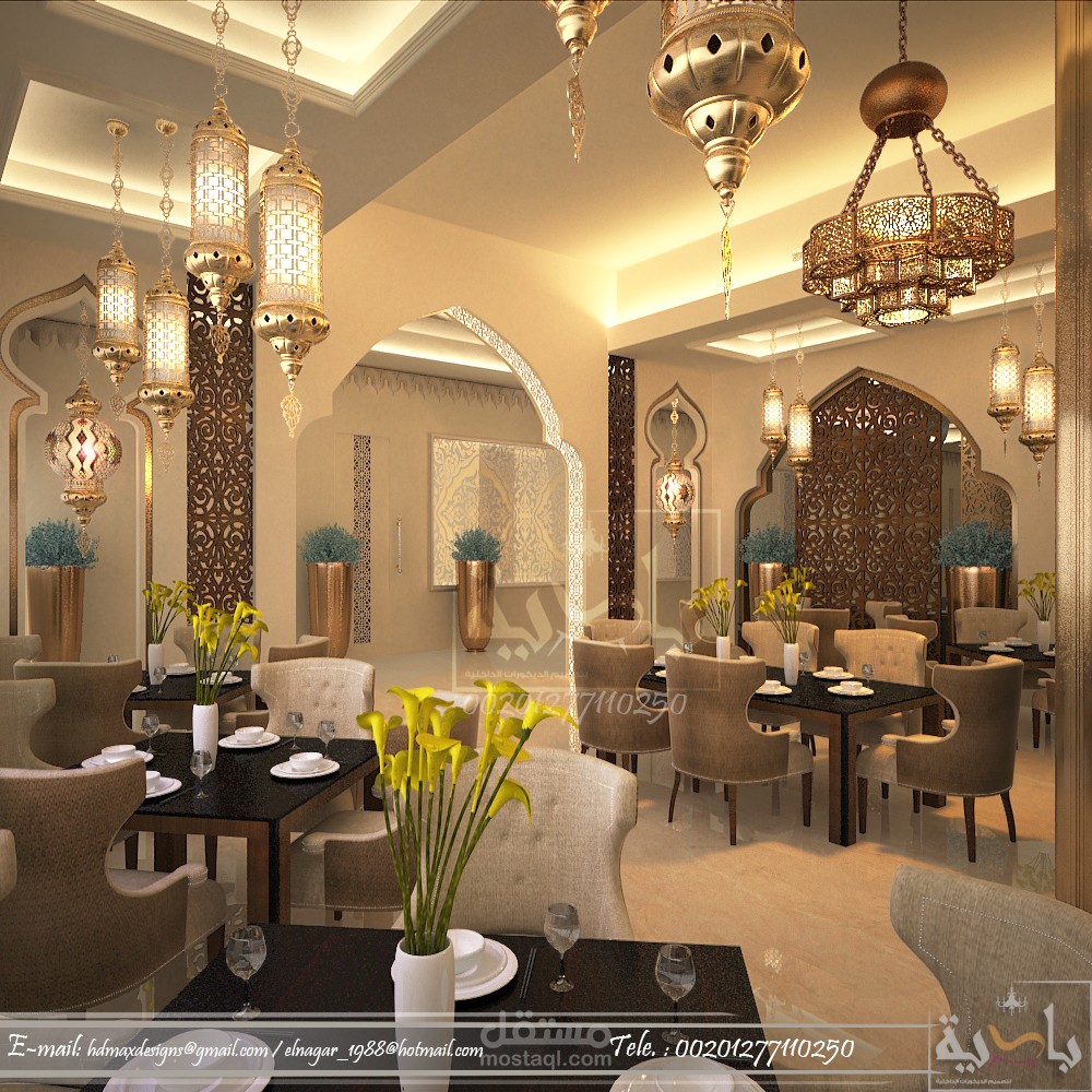 تصميم مطعم بروح الاسلامي بشكله الحديث مع طابع الفخامة بطلب من العميل في الممكلة العربية السعودية