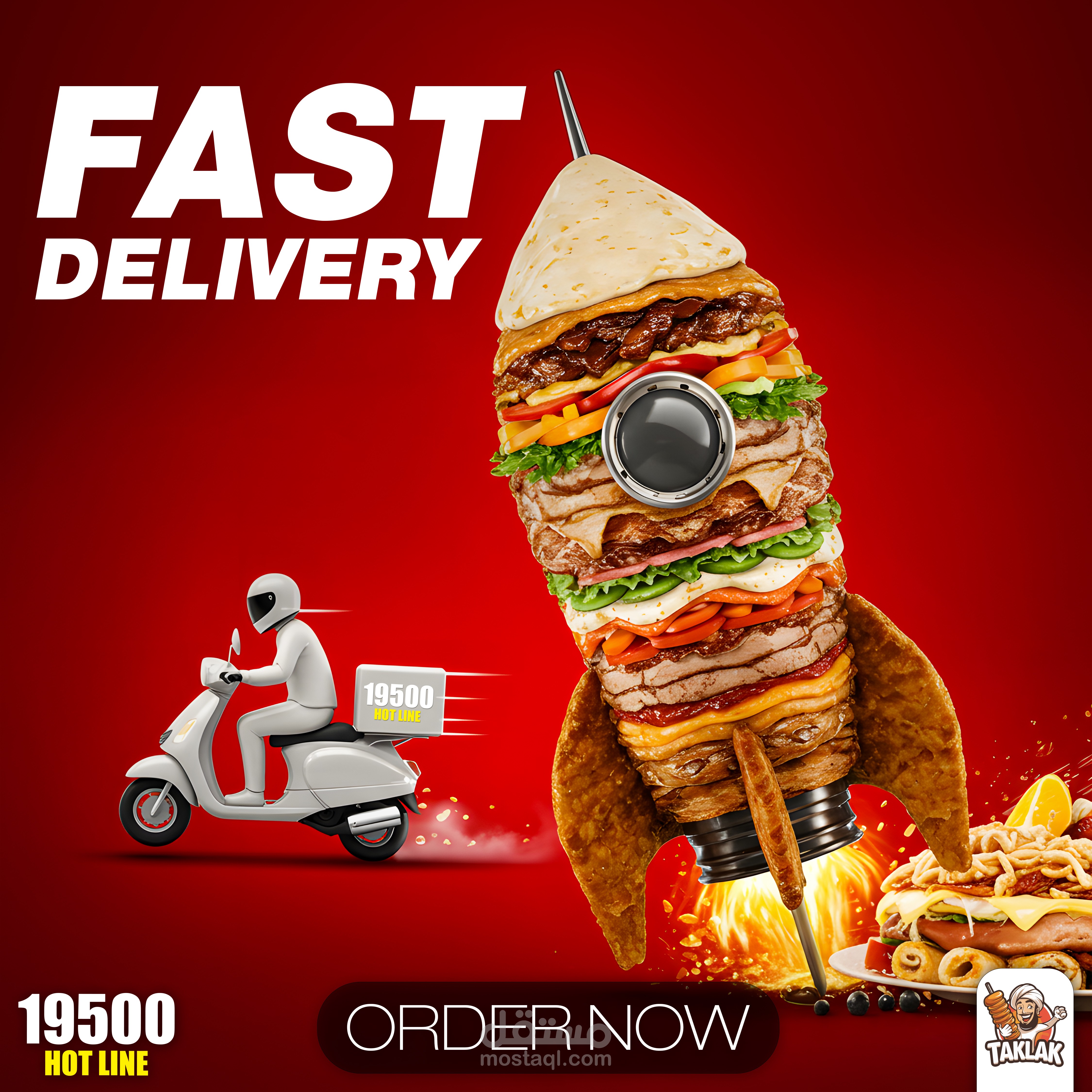 مجموعة بوستات لمطعم شاورما سوري بهوية بصرية باللون الأحمر، تعكس الطابع الشرقي، الشهية، وقوة البراند بأسلوب جذاب وبسيط.