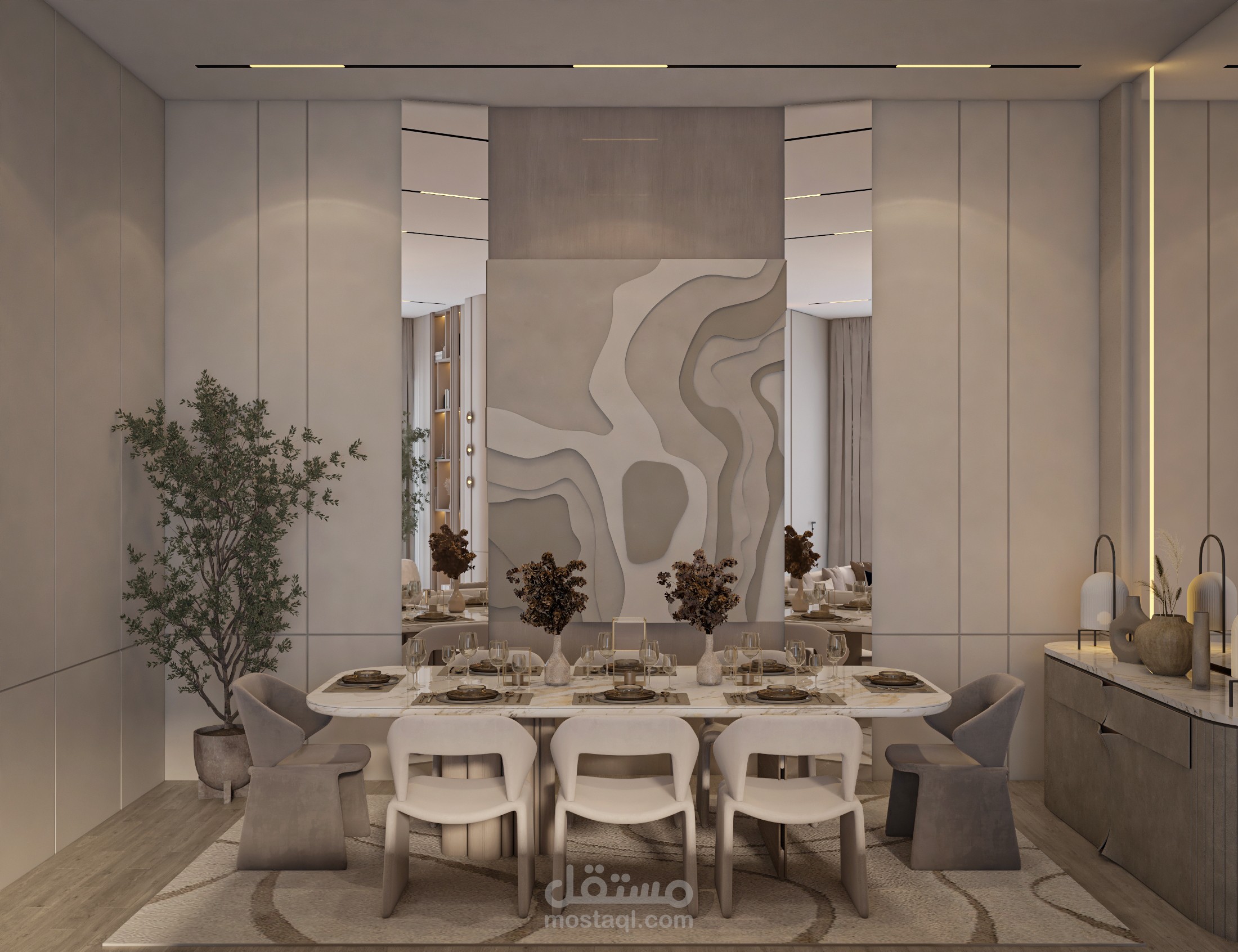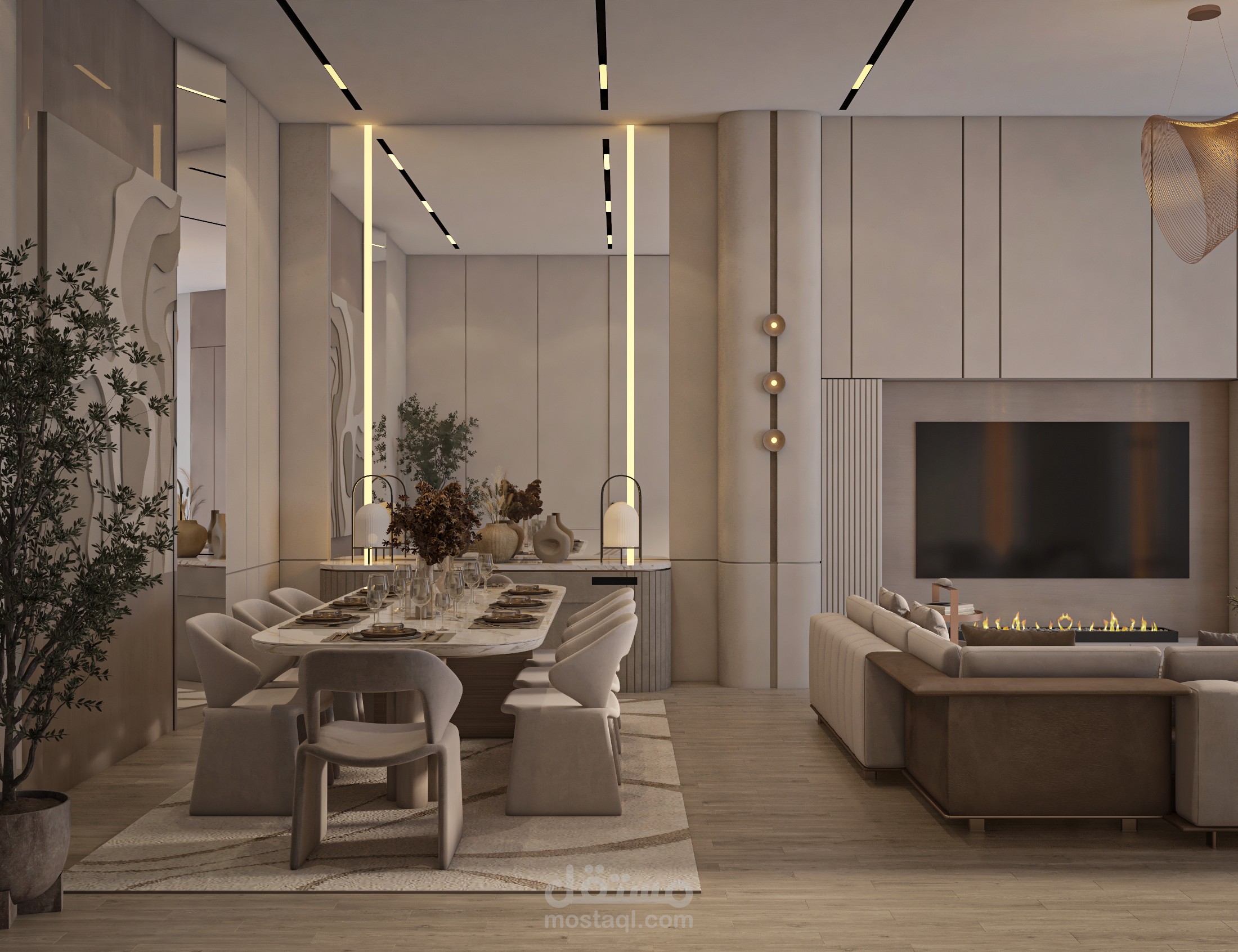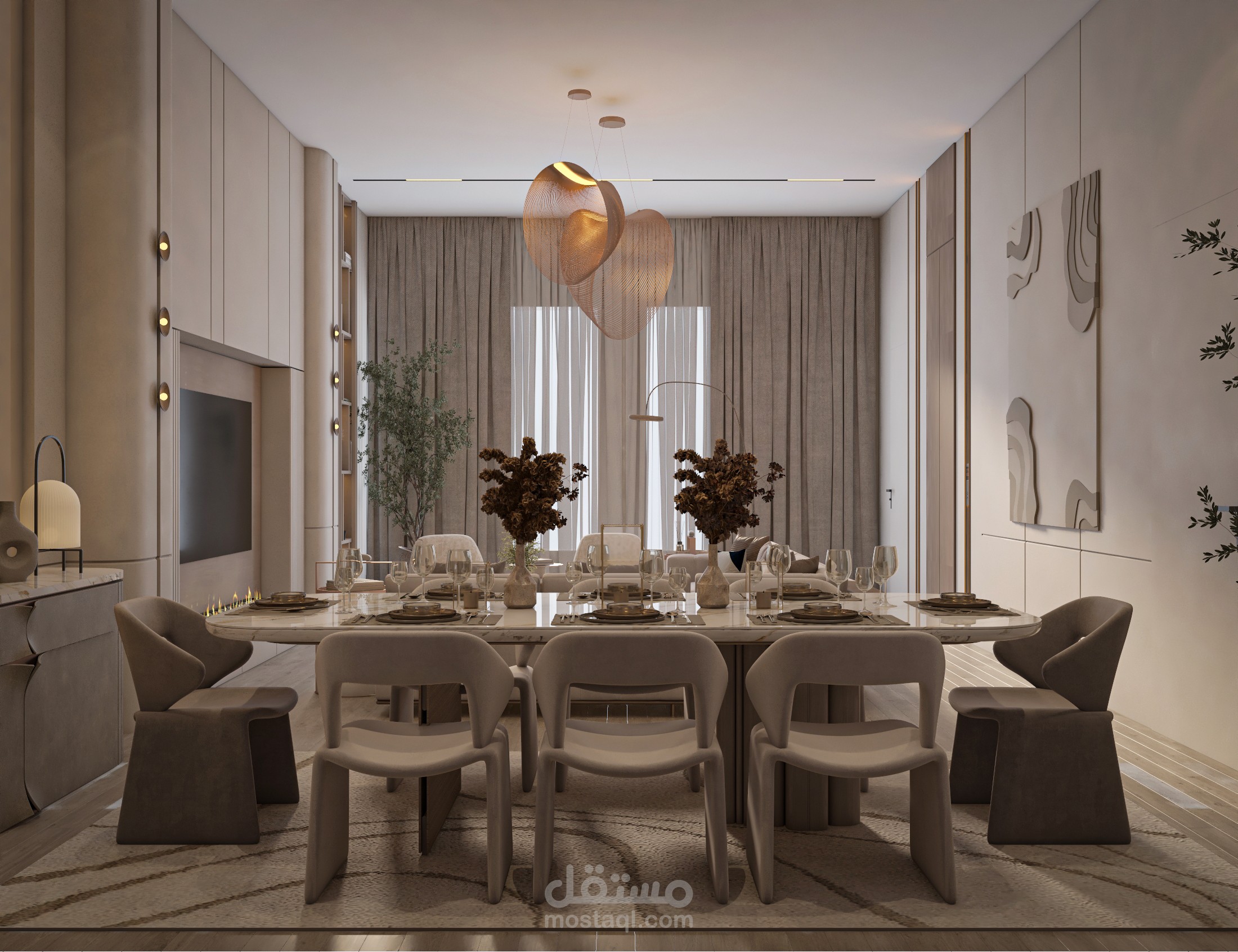 في هذا التصميم تم اعتماد ستايل الموديرن مع إضفاء لمسات تصميمية مميزة أعطت الفراغ جمالية