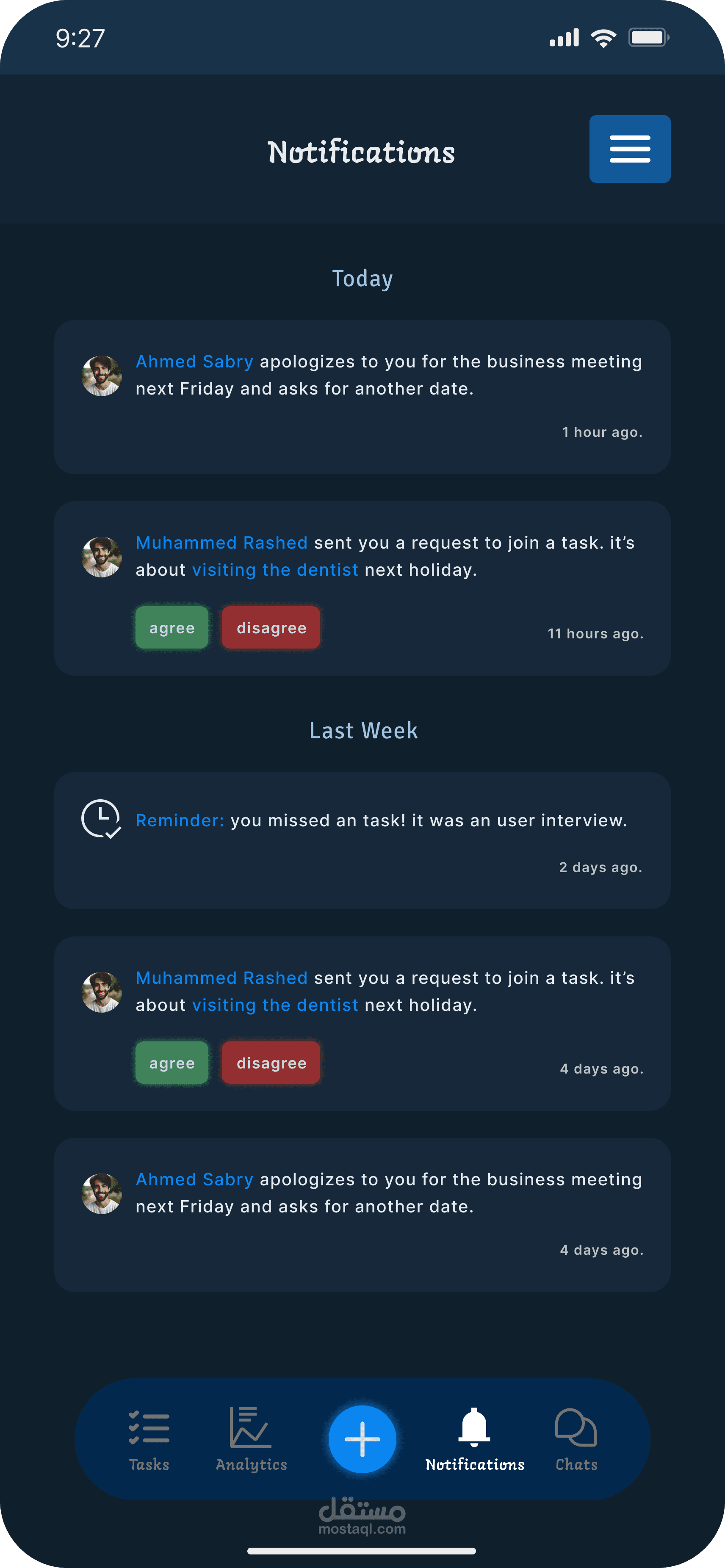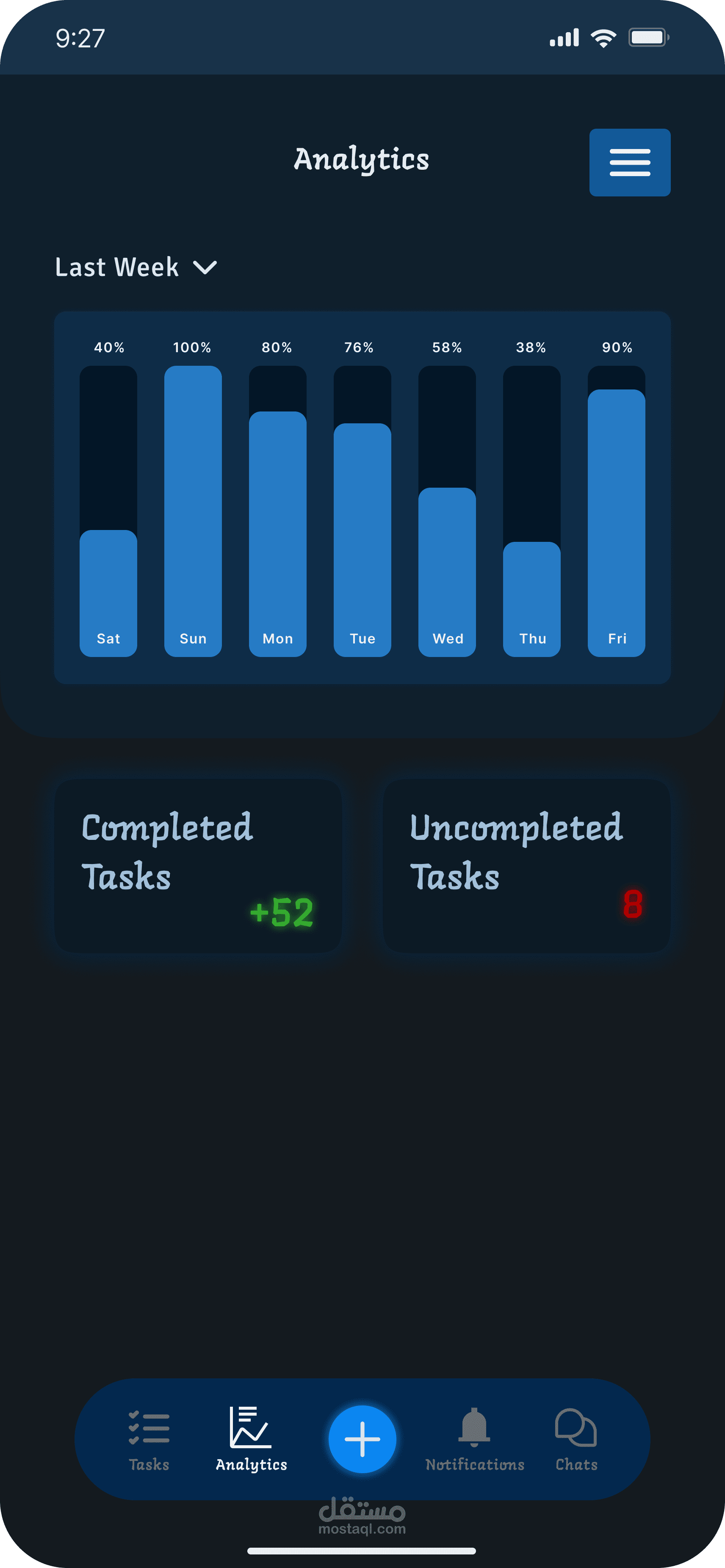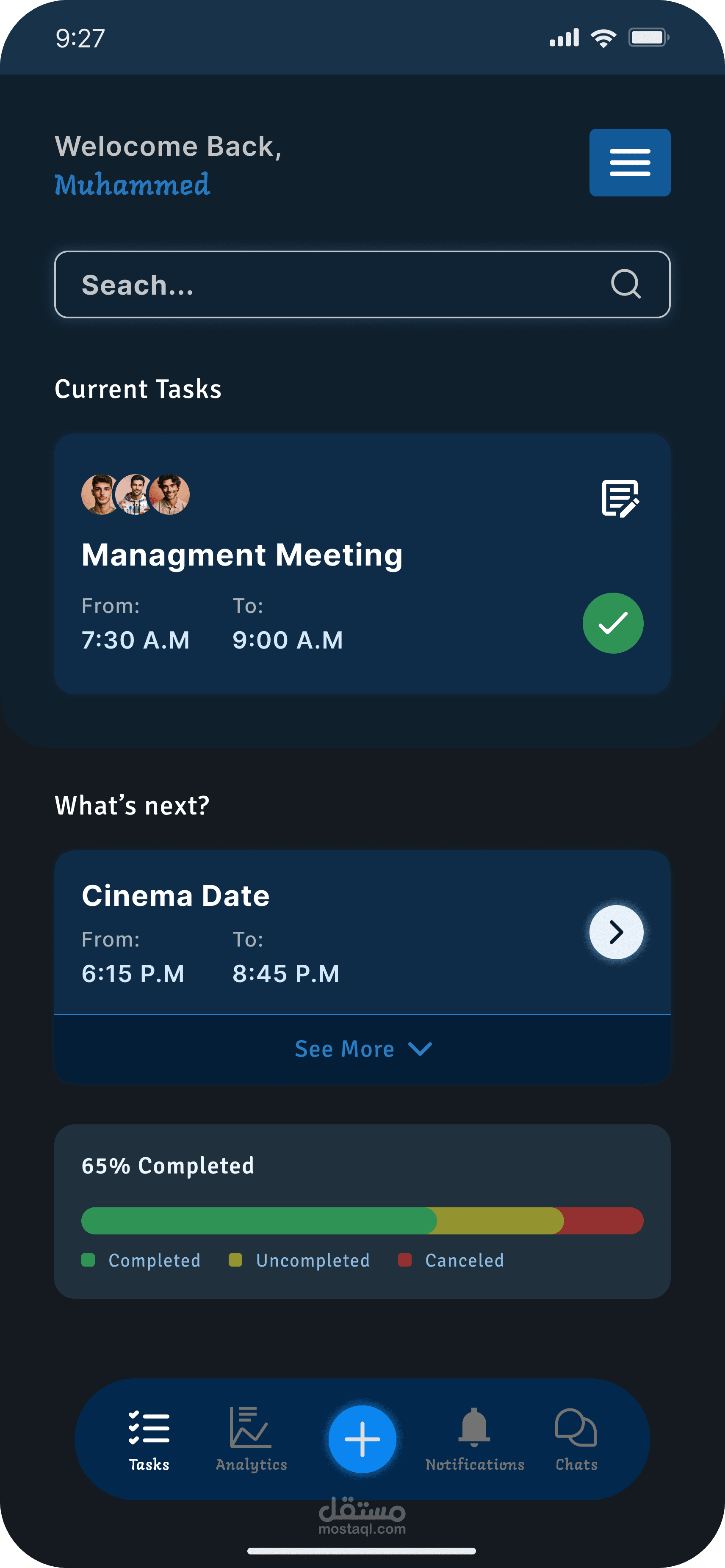 Taskat هو تطبيق بيساعد الشباب والموظفين علي تنظيم يومهم ووقتهم بشكل سلس وبسيط عن طريق اضافة مهامهم اليومية ورؤية الاحصائيات لمتابعة تطورهم بشكل مستمر.