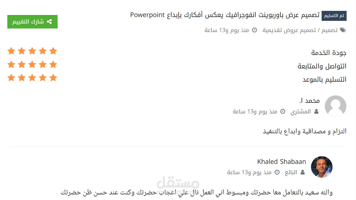 بفضل الله تم تفريغ كتاب كامل بصيغه PDF الي ملف وعرض باور بوينت مميز وقوي جدا حيث كان العمل هو تفريغ محتوي ال PDF وعمل نسخه طبق الاصل من صور ونصوص وترتيب داخل ملف باور بوينت قابل للتعديل علي اي شي بداخله وبفضل الله تم الانتهاء من تفريغ الملف كامل ونقله الي ملف باور بوينت بعدد ( 162 شريحة ) وتم الانتهاء خلال يومين عمل بفضل الله وتم اعطائي 5 نجوم من العميل