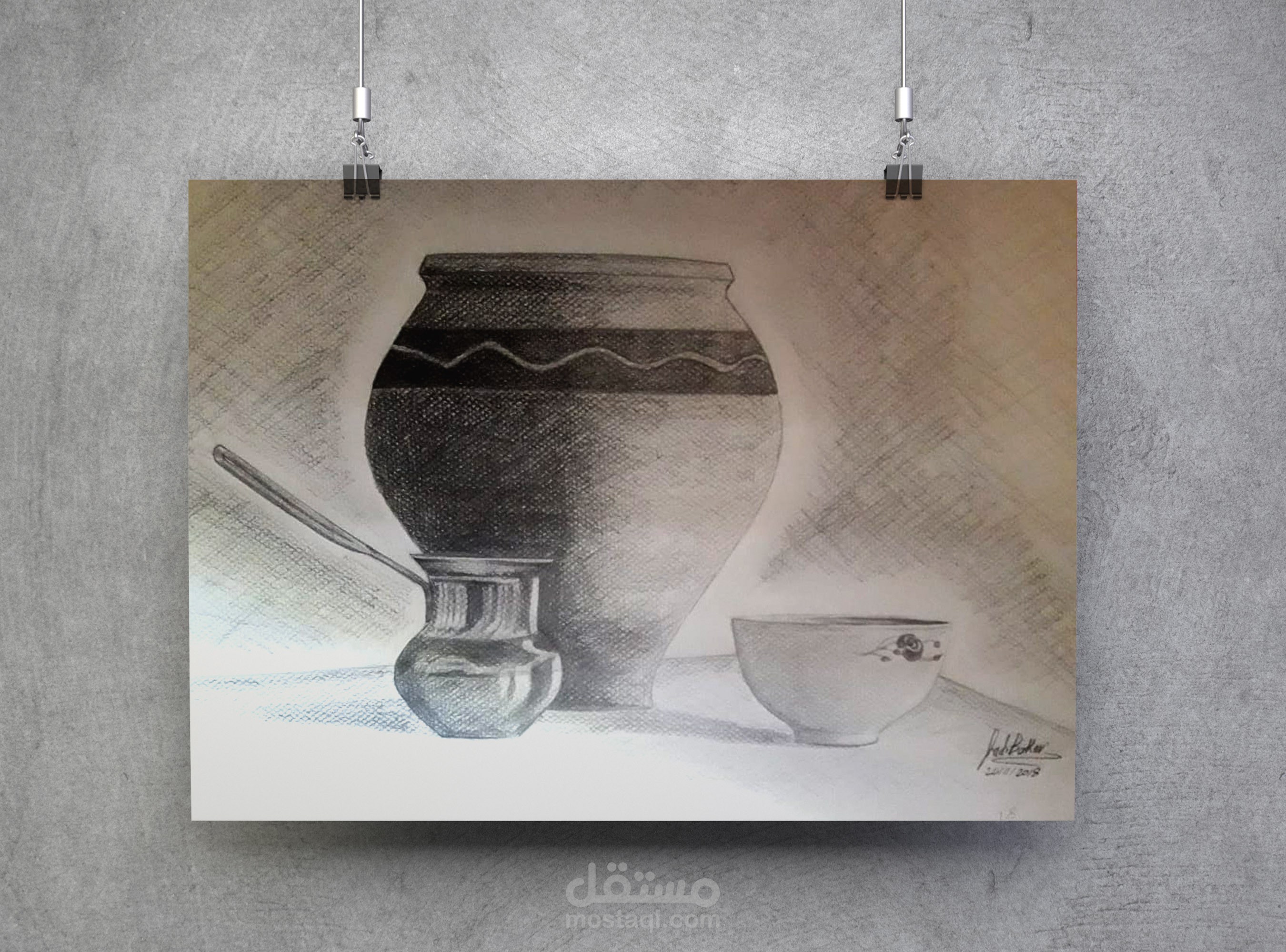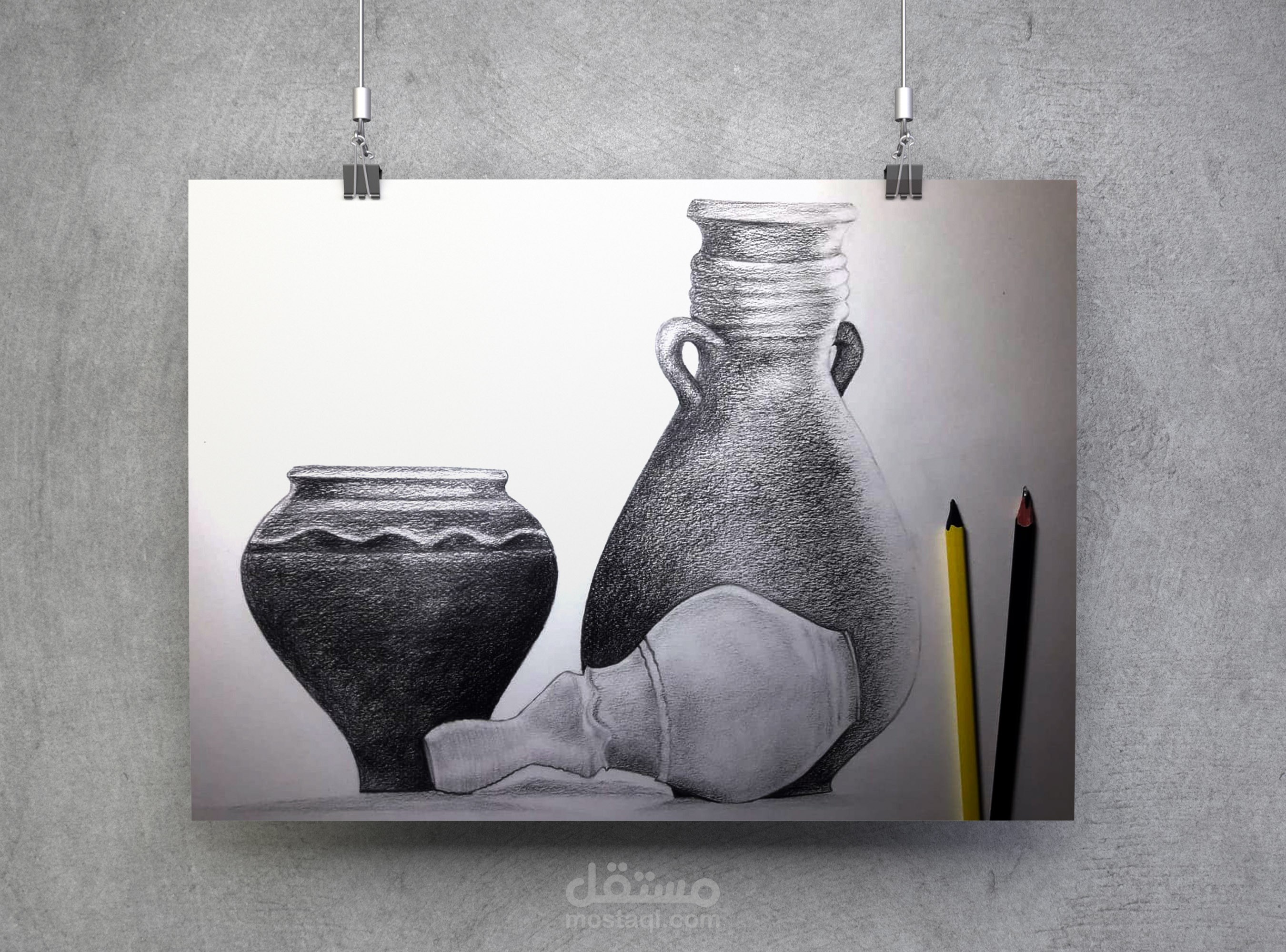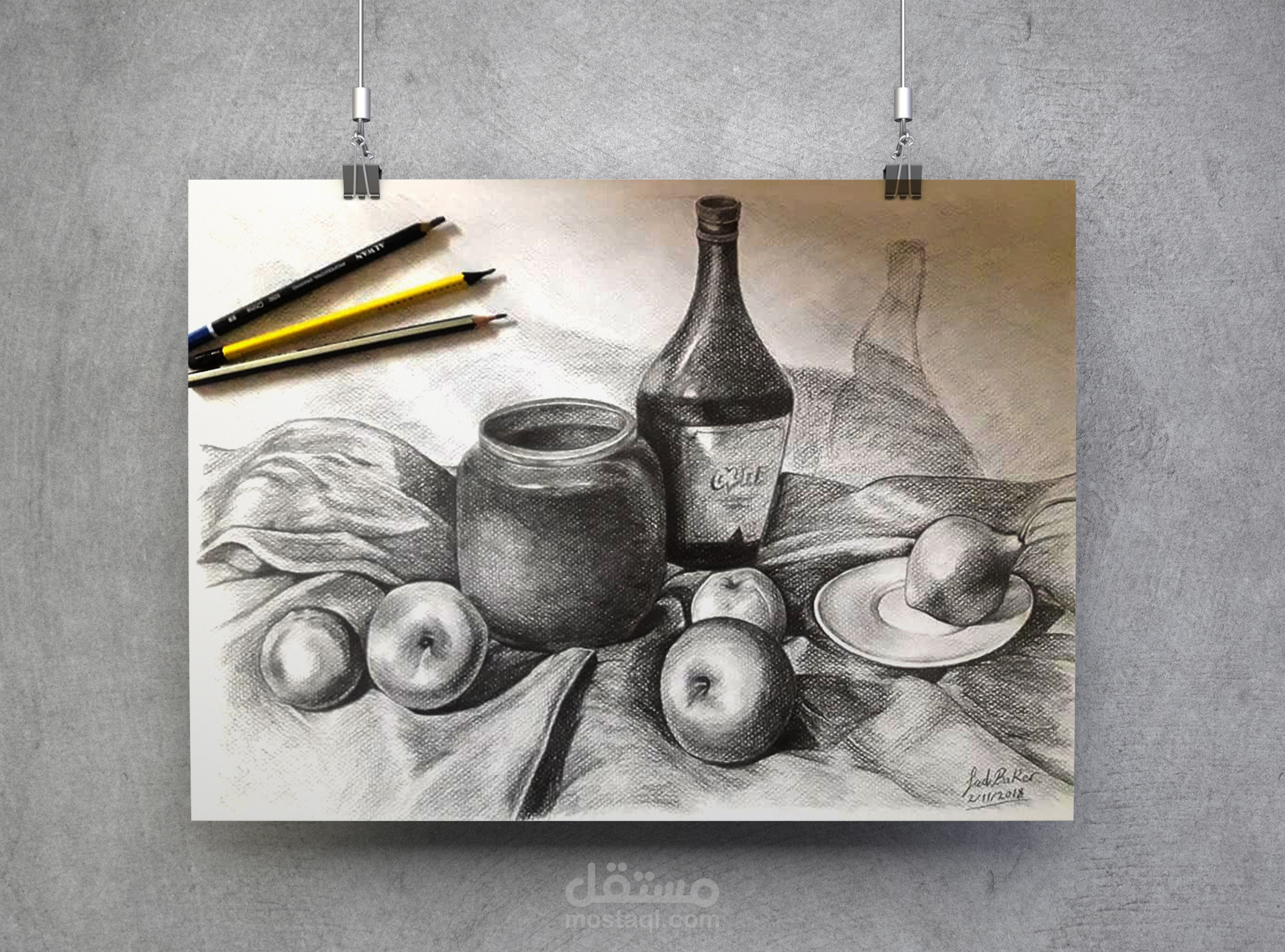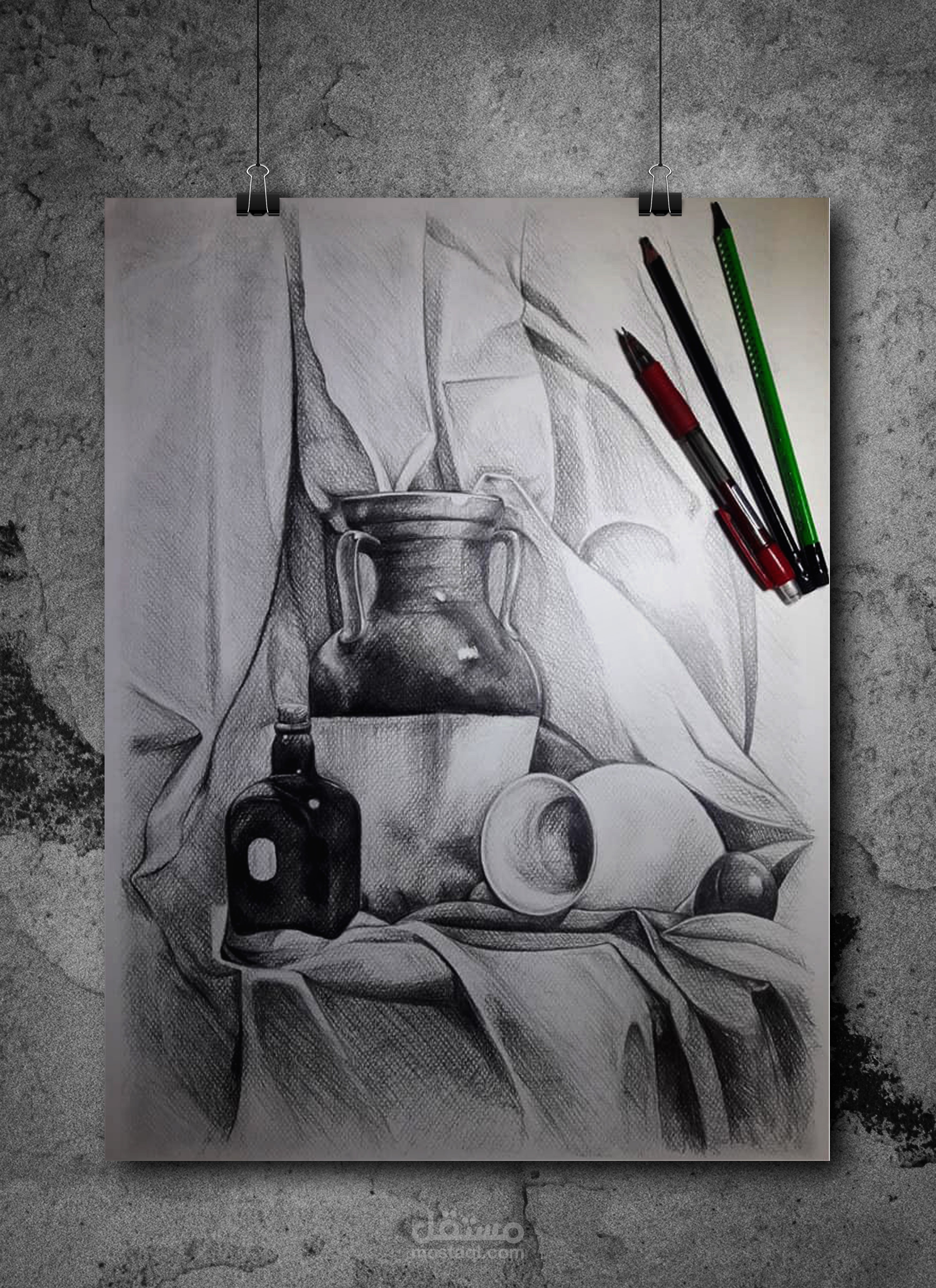 رسم الطبيعة الصامتة بأقلام الرصاص والفحم
