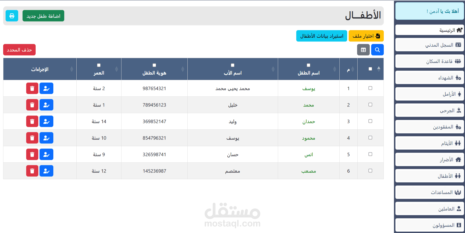 موقع يقوم بإدارة أعمال لمؤسسة تقوم بتقديم المعونات لعدة أقسام، يحتوي النظام على أقسام عديدة منها الأسر و الجرحى و الأطفال و الأيتام ....