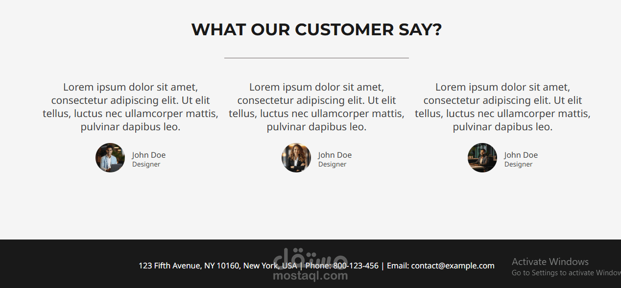 عرض تفاعلي للمشاريع السابقة مع صور وفيديوهات توضيحية، وشهادات العملاء لزيادة المصداقية.
