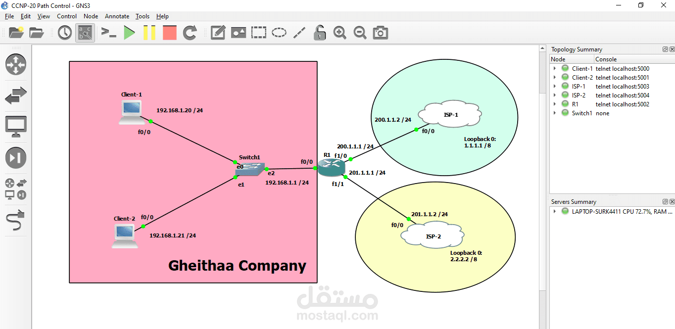 المستوى في هذه الخدمة يتضمن تجهيز مختبر (Lab) يضم تجهيزات الشبكة المطلوبة بعدد 4 أجهزة شبكية (مثلا: Router و Switch و Firewall أو Server)