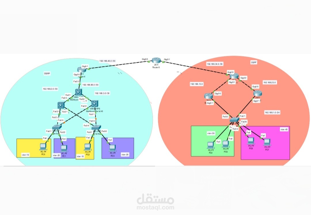 سنلتزم بإنجاز الإعدادات والتكوين الصحيح والدقيق لأجهزة الشبكة المختلفة والأجهزة الطرفية الحاسوبية (PCs)، من دون تفعيل أي برتوكولات أو اعدادات اضافية.