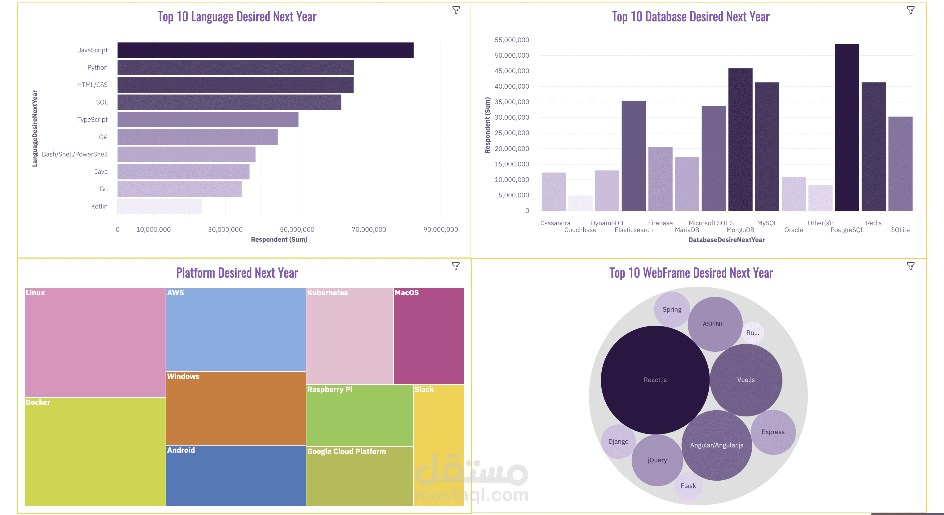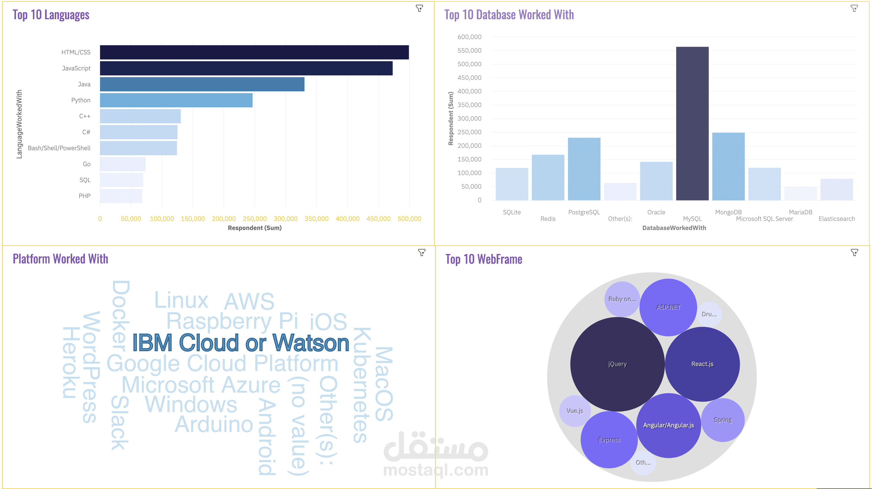This project aims to develop an interactive dashboard that provides valuable insights into current technology usage and future trends. Leveraging survey data collected from developers worldwide, the dashboard will offer a comprehensive overview of the evolving technology landscape. The dashboard will be structured into three main tabs, each focusing on a distinct perspective of technology trends.