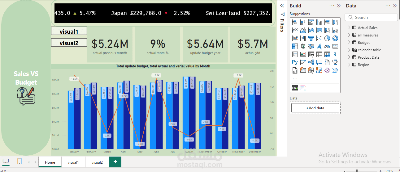 إنشاء تصورات لعرض فجوة الميزانية وهوامش الربح