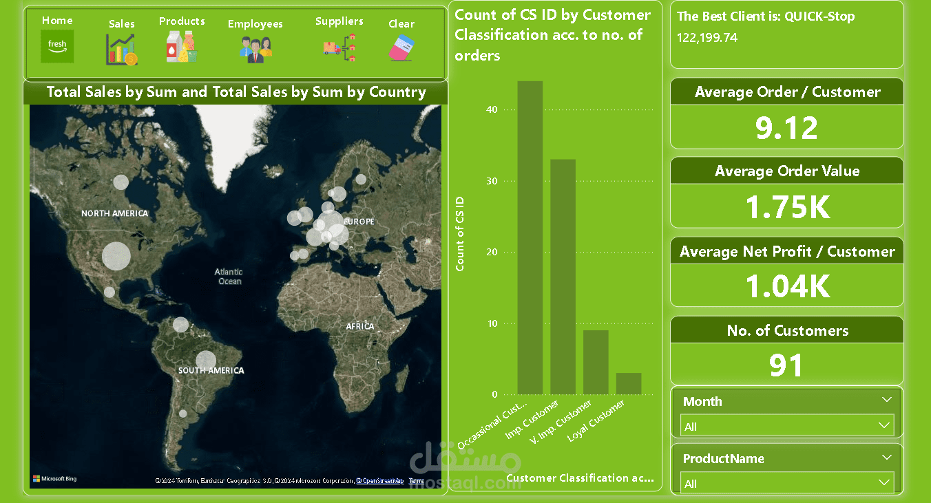 -كل شاشة تتضمن الفلاتر المناسبة، والمؤشرات (KPIs)، والرسوم البيانية المختلفة لعرض البيانات بشكل واضح وسلس.
