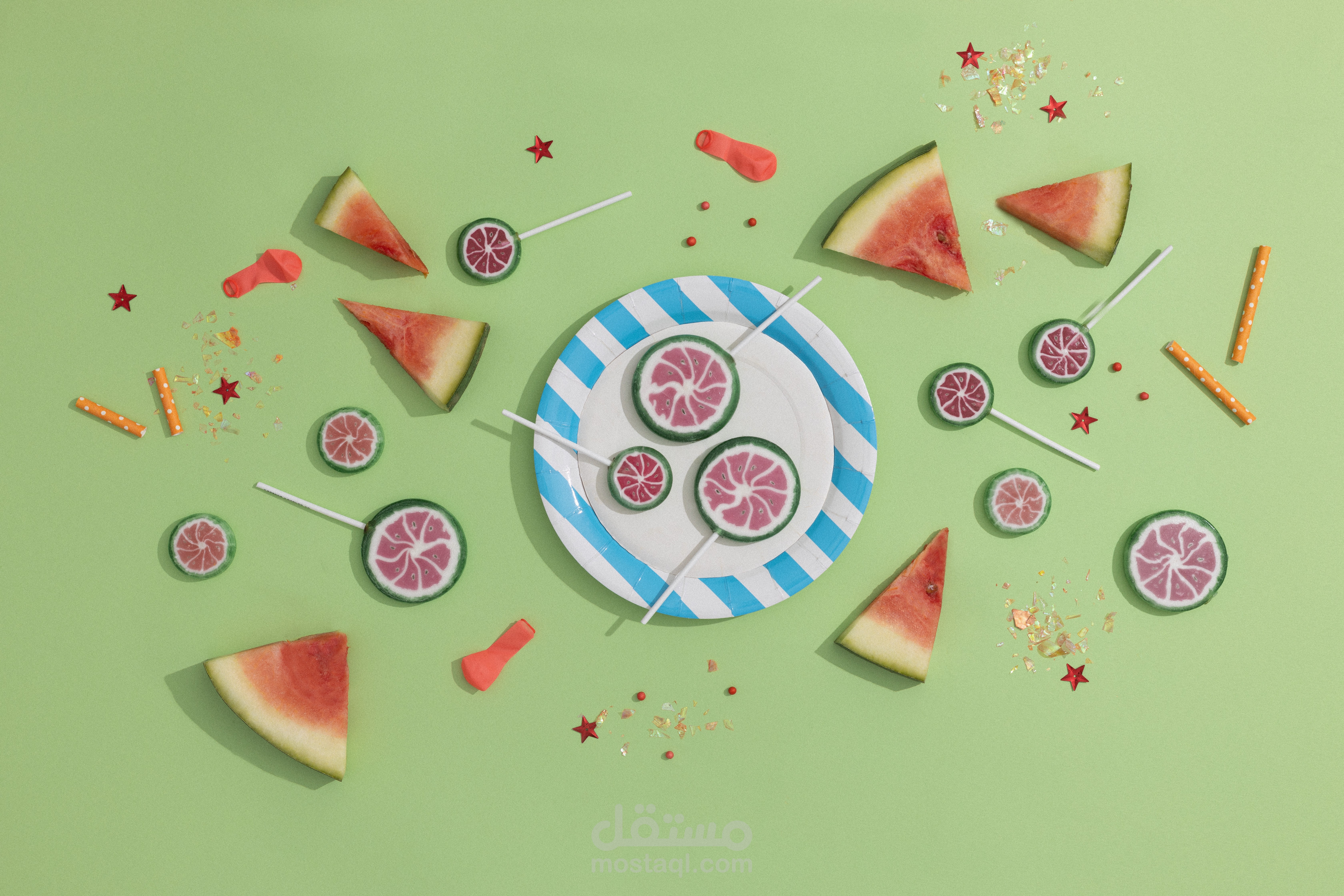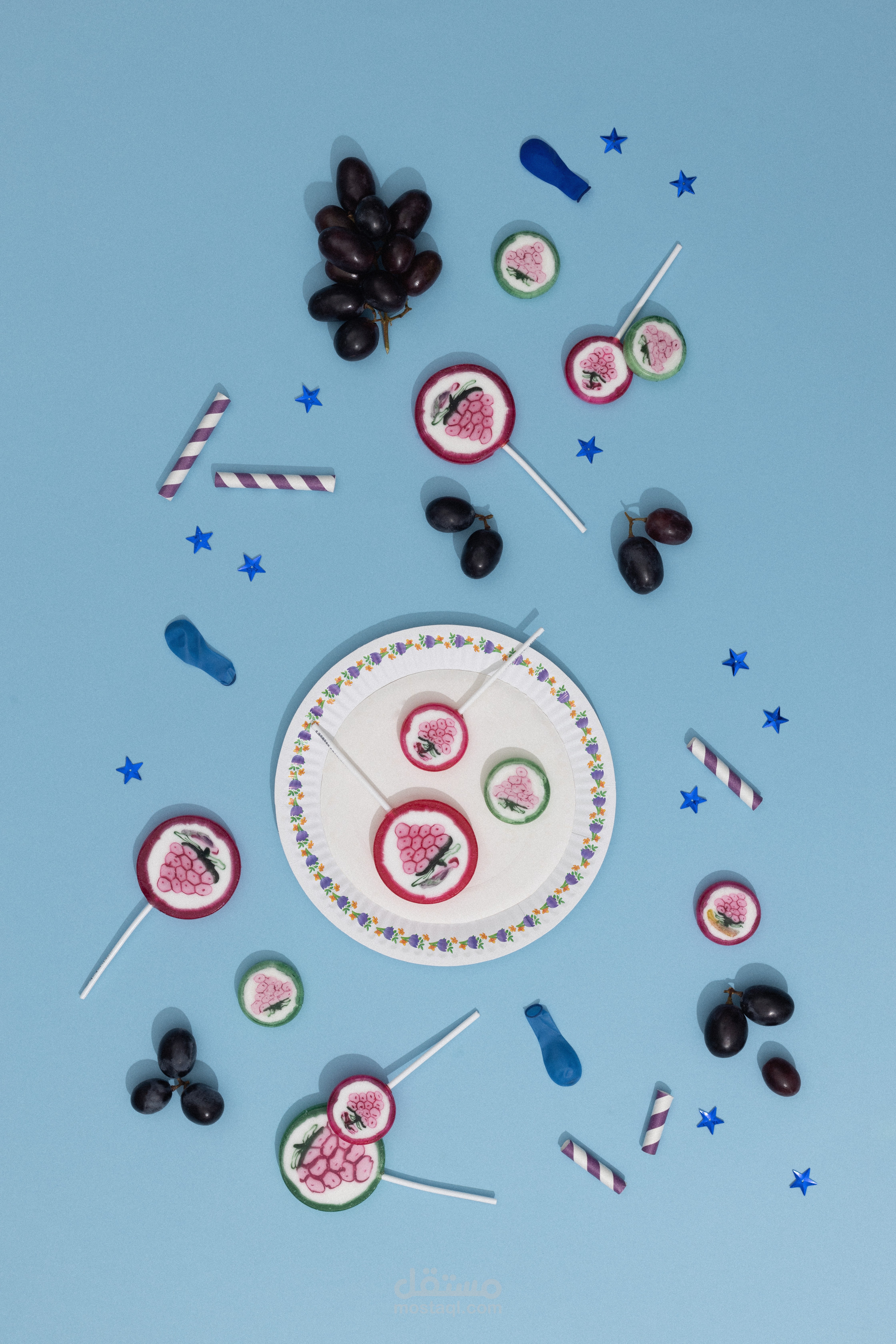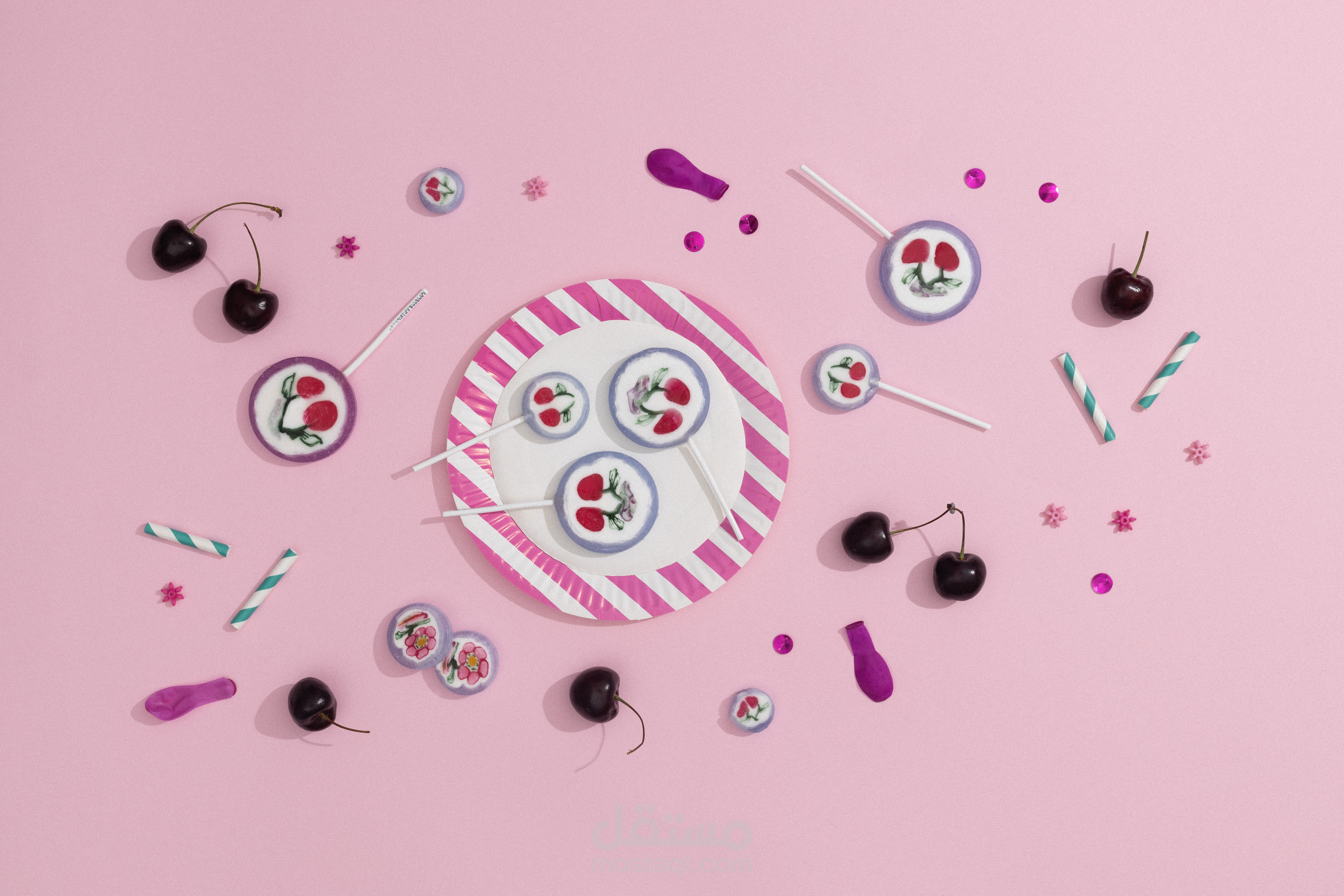 تصحيح الألوان (Color Grading): تم التركيز على جعل الالوان للخلفية "نظيفاً" وعميقاً، مع إبراز التباين مع ألوان الحلويات لتكون الصورة مشبعة بالألوان وجاذبة للعين.