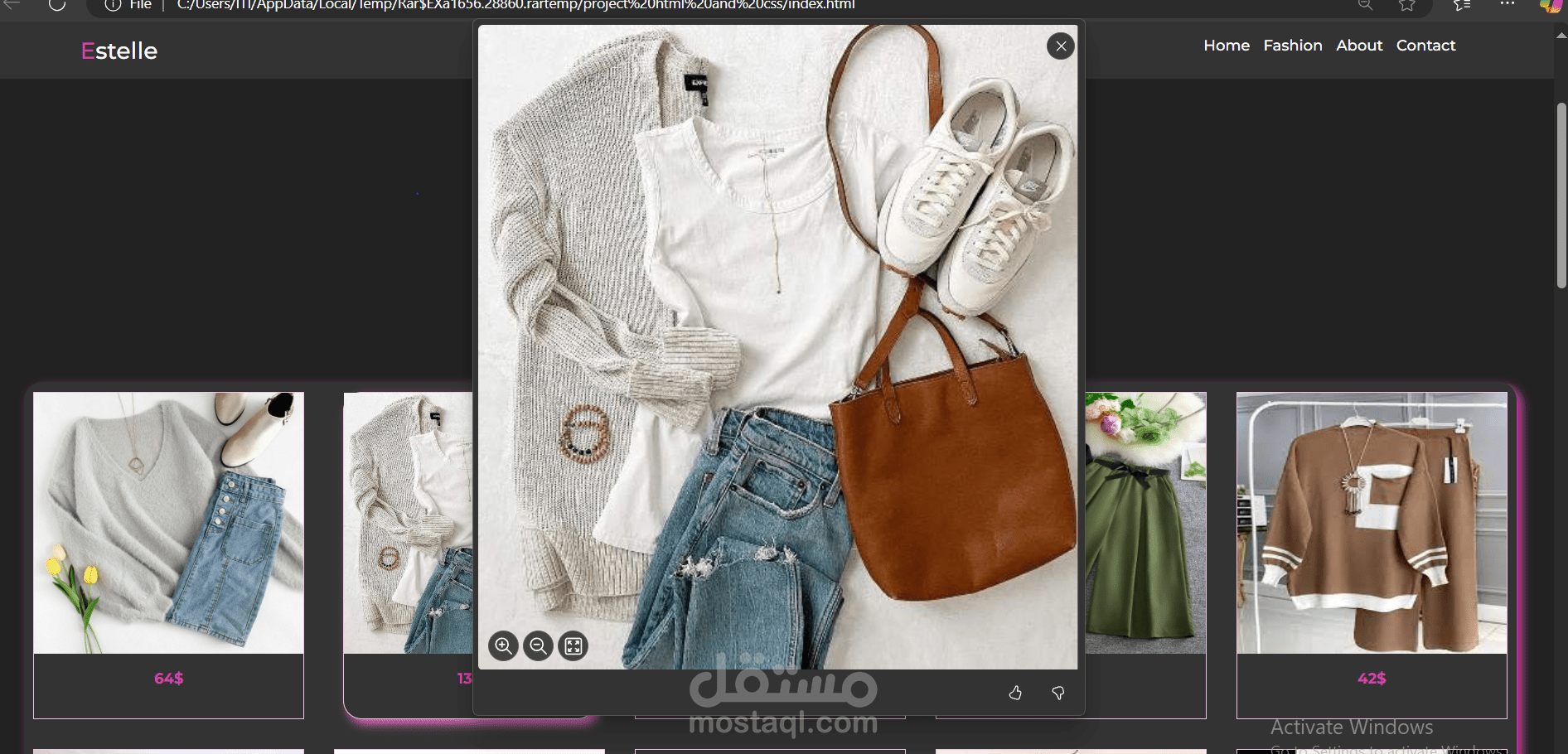هذا هو موقع إلكتروني لبيع الملابس عبر الإنترنت تم تصميمه باستخدام تقنيات HTML و CSS و JavaScript، وهو موجه لتمكين العملاء من تصفح وشراء الملابس بسهولة عبر الإنترنت. الموقع يعتمد على واجهة بسيطة وسهلة الاستخدام، ويتميز بعدة خصائص تهدف إلى تحسين تجربة المستخدم وتحفيز عملية الشراء.