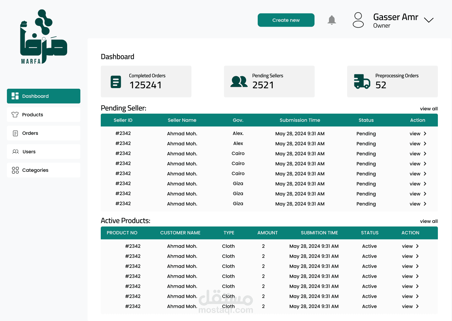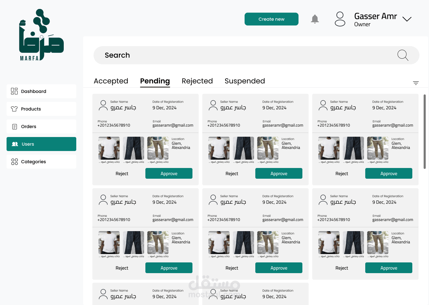 UI/UX design of a four-tier e-commerce platform, including mobile apps for users and sellers and a web-based admin dashboard. This involved creating dashboards, profile management features, and data visualizations, similar to your user and clinic interfaces.