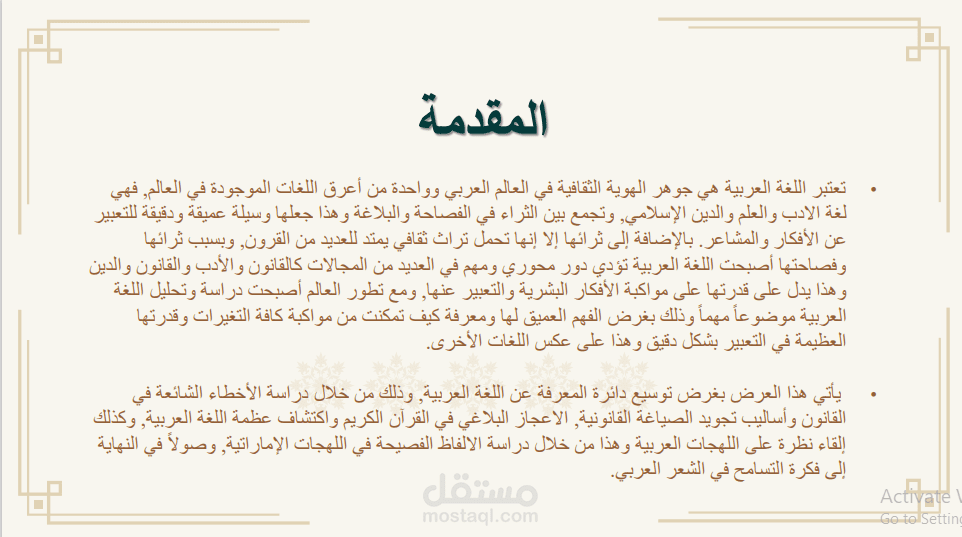 في هذا العمل طٌلب كتابة محتوى ملف بوربوينت بحيث يتضمن الملف من 30 ل 40 شريحة.