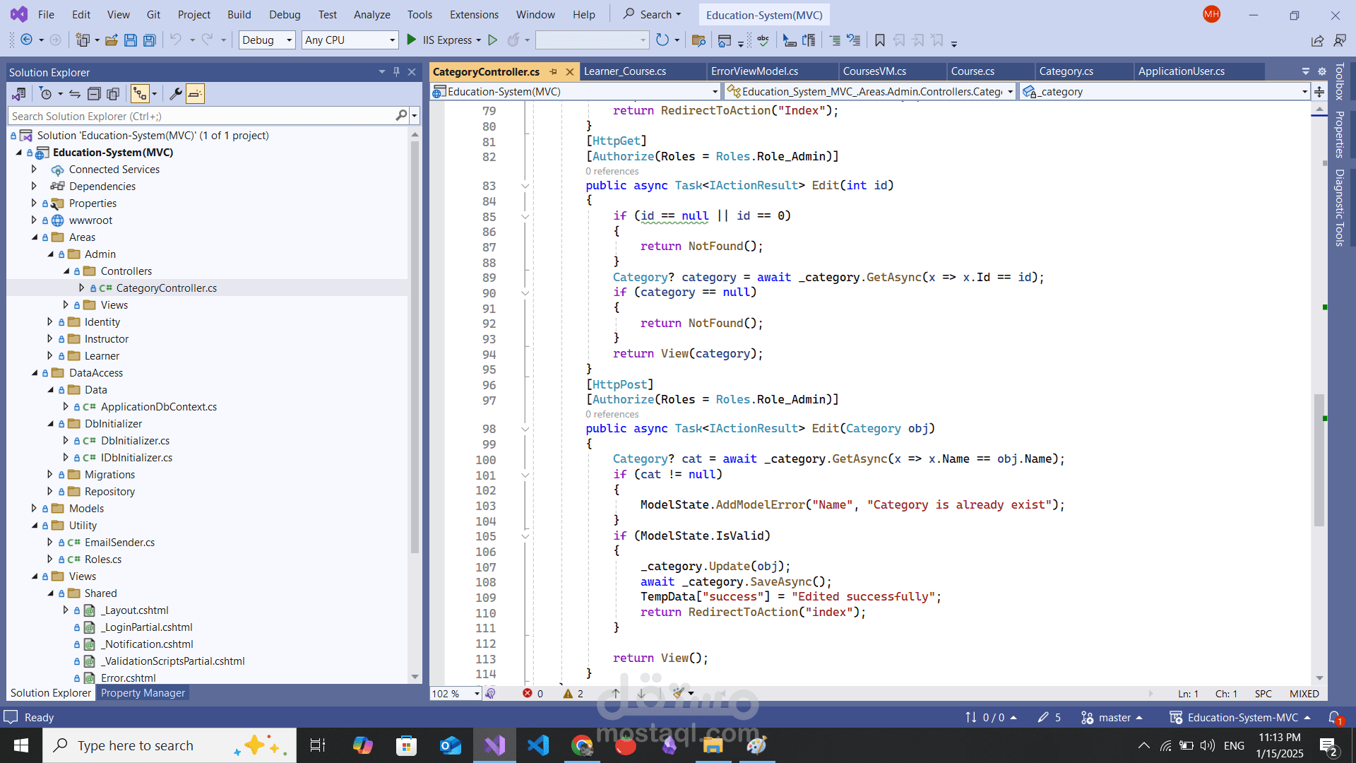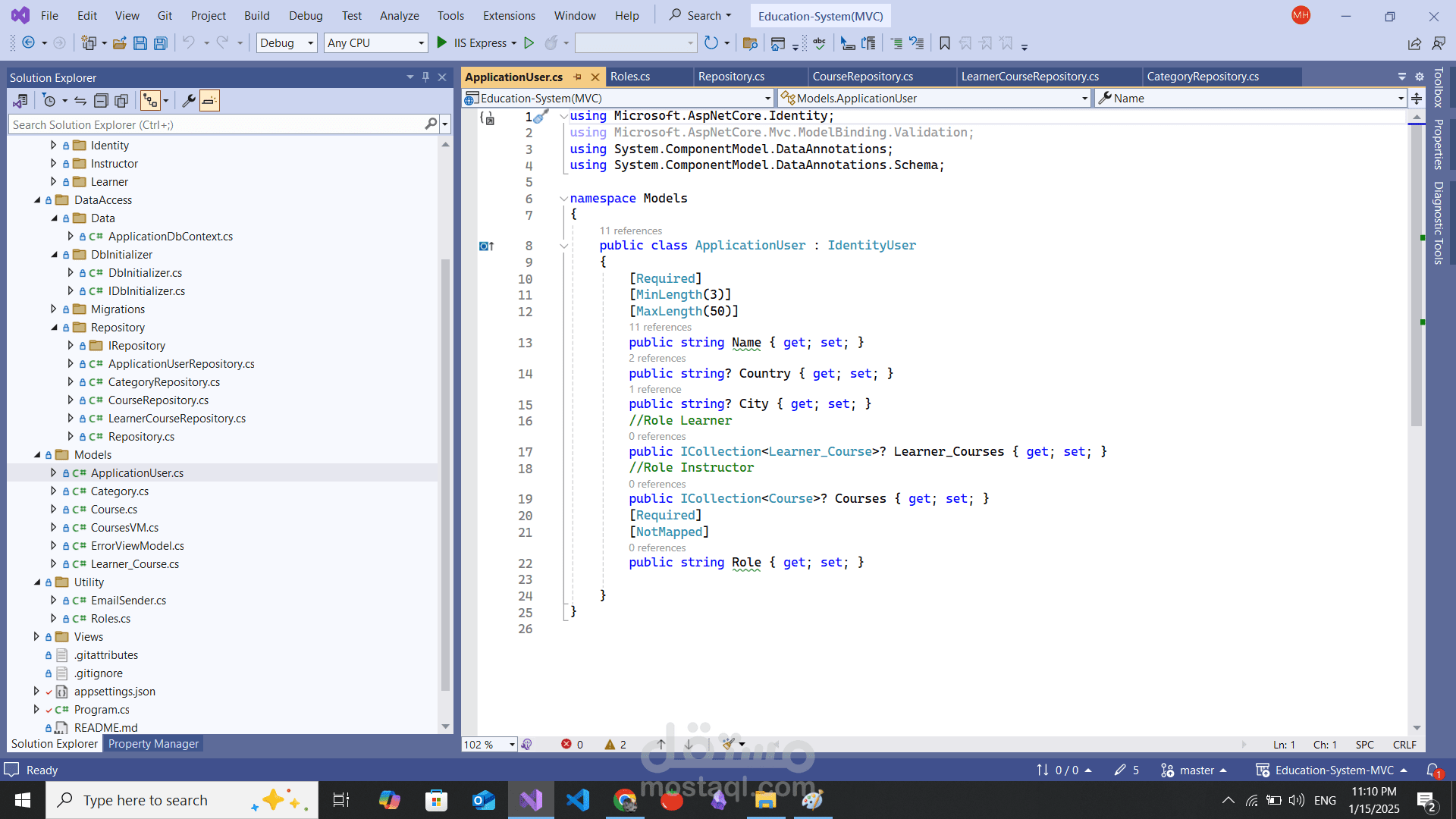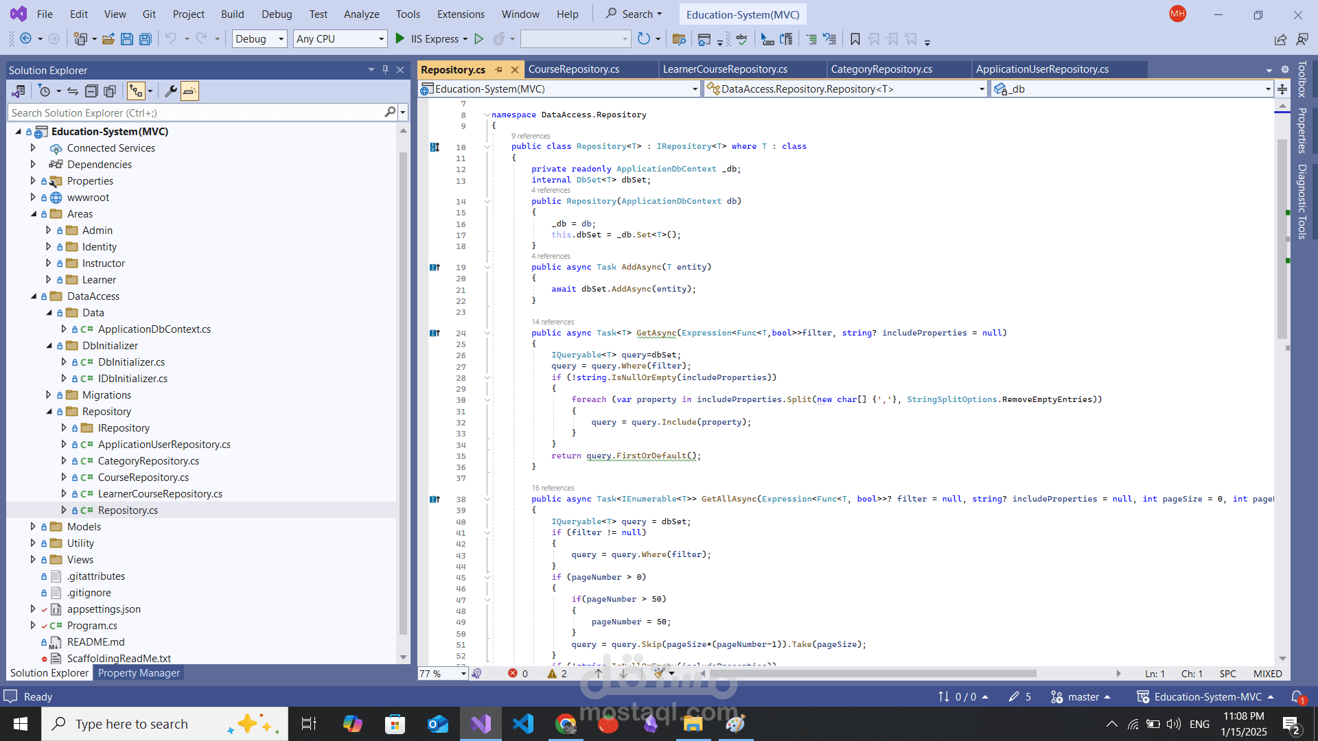 مشروع دوت نت بطريقة MVC ويتم استخدام فيه Repository pattern و authentication و authorization و identity و Razor pages و Dependency Injection ويقوم بتنفيذ N-Tier Architecture