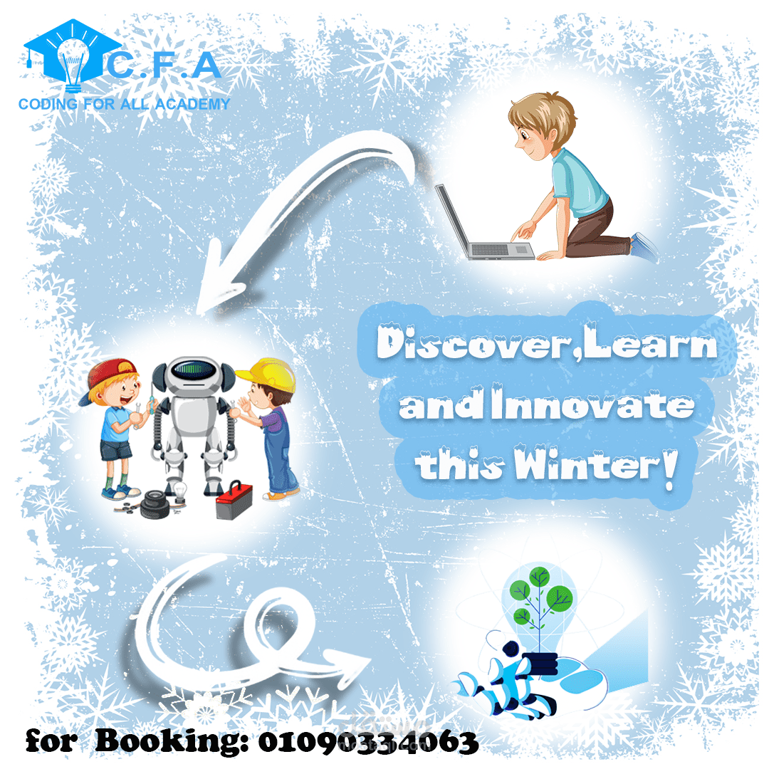 تصاميم لأكاديمية تعليم كورسات برمجة للاطفال لللمخيم الشتوى تصميم بوسترات سوشيال ميديا