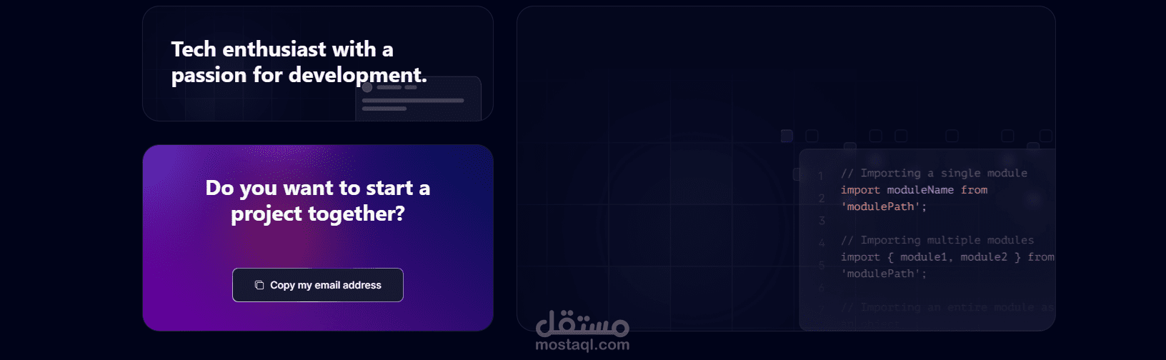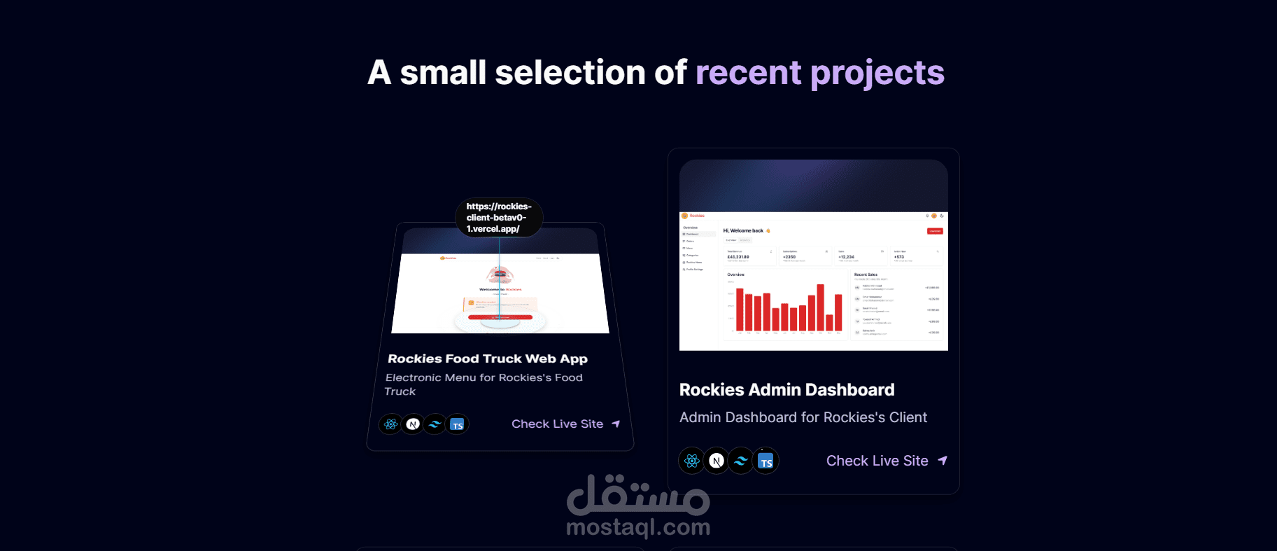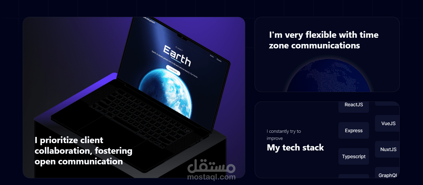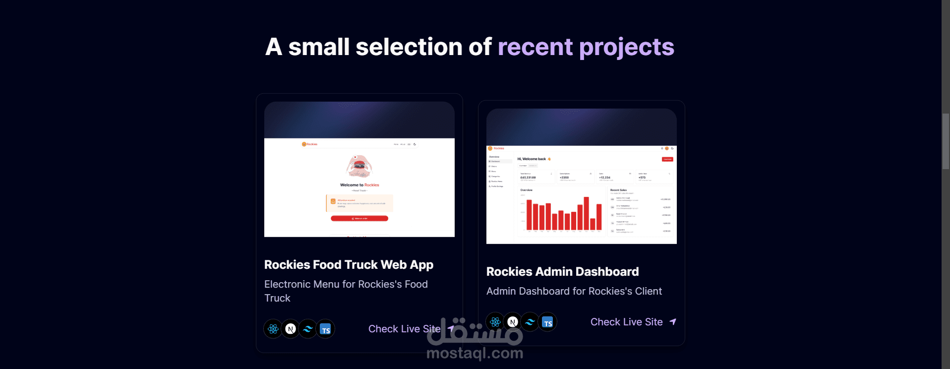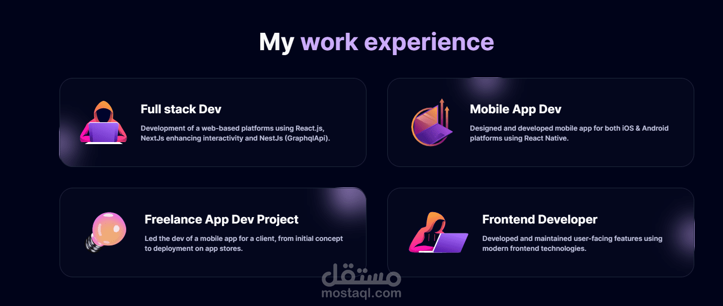 Portfolio أنيق لعرض المشاريع والمهارات الشخصية.