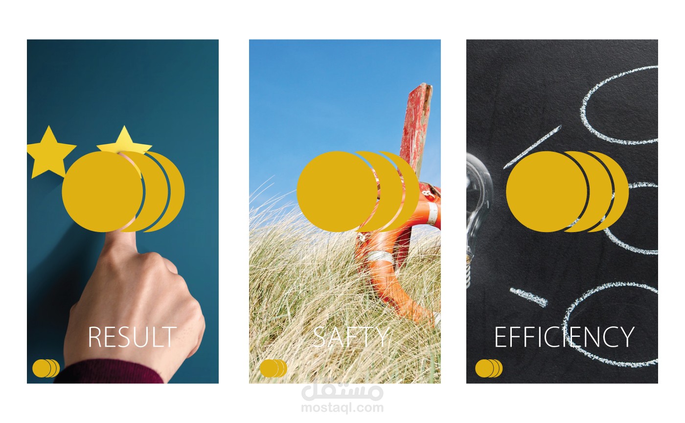 براند كامل لشركة تقدم خدمات عرض وحجز وطلب السياحة تم اختصار الايقومة بثلاث دوائر بلون الاصفر والتي تدل على الطبيعة والشمس والتلات دوائر تدل على الثلات خدمات التي تقدمها الشركة