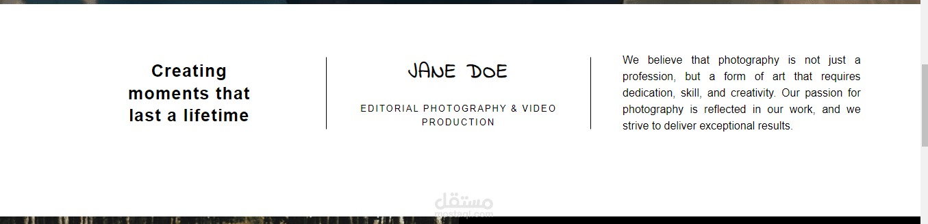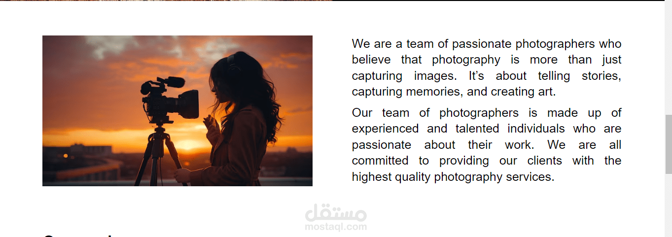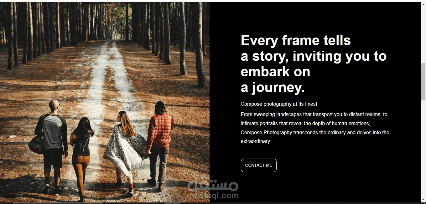 يحتوي على خلفية صورة كبيرة مع عنوان رئيسي يلفت الانتباه (مثل "معرض الصور") وفقرة قصيرة توضح الفكرة أو الهدف.