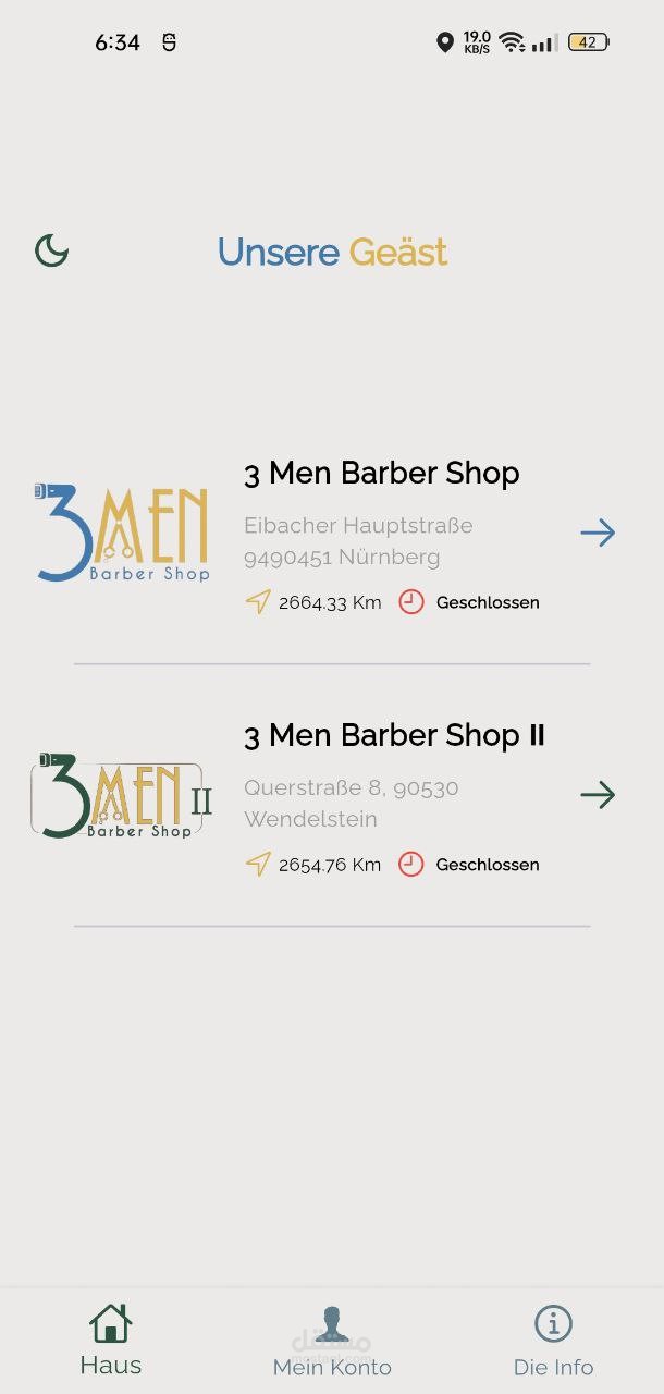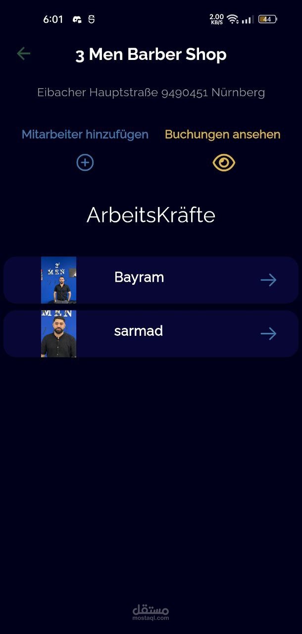 Its mobile application for a baber Shop in Germany called 3 Men Barber Shop. It's for booking services in this shop and admin can view these books .