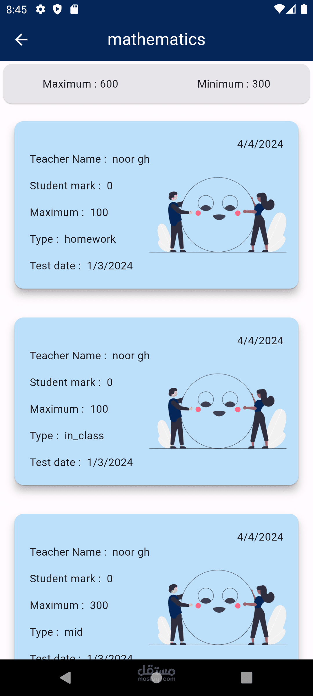 - عرض الدرجات: يسمح لأولياء الأمور بعرض درجات أطفالهم، مصنفة حسب المادة. تساعد هذه الميزة أولياء الأمور في متابعة الأداء الأكاديمي وتحديد المجالات التي قد يحتاج الطفل فيها إلى دعم إضافي.