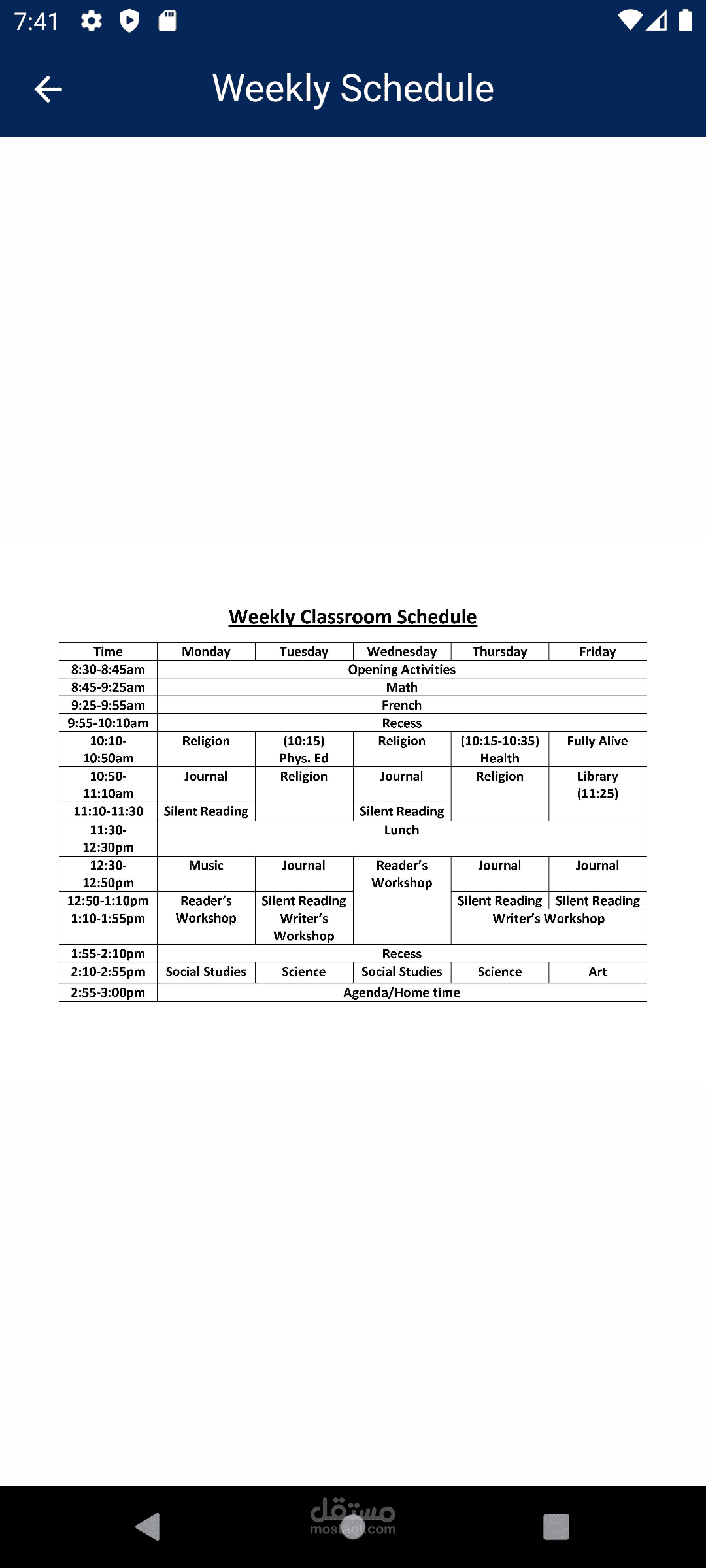 - نظرة عامة على الجدول: يعرض الجدول الأسبوعي كصورة، مما يسهل على أولياء الأمور رؤية جدول أطفالهم بنظرة سريعة. يساعد هذا في التخطيط وضمان حضور الطفل لجميع الدروس والأنشطة في الوقت المحدد.