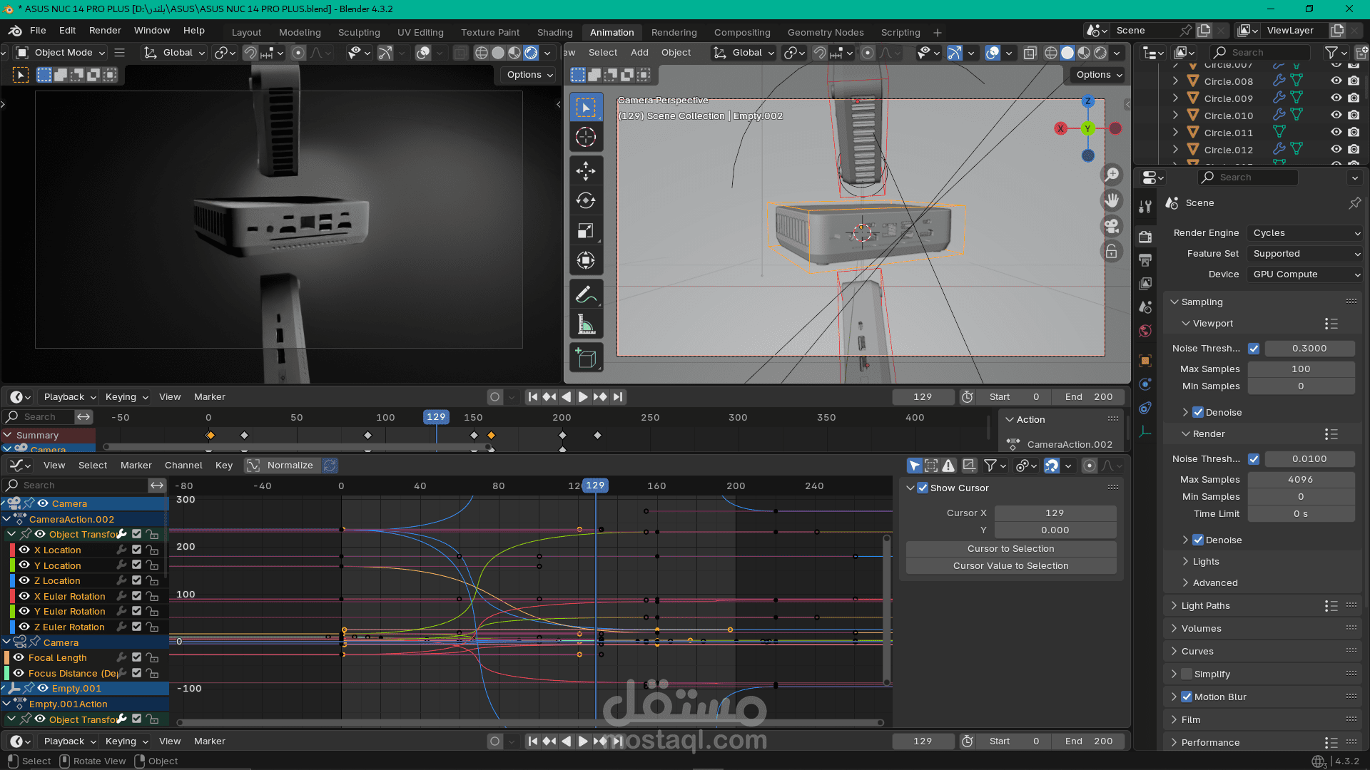 تصميم ثلاثي الأبعاد لمنتج Asus nuc 14 pro plus و فيديو انيميشن للاعلان عن المنتج