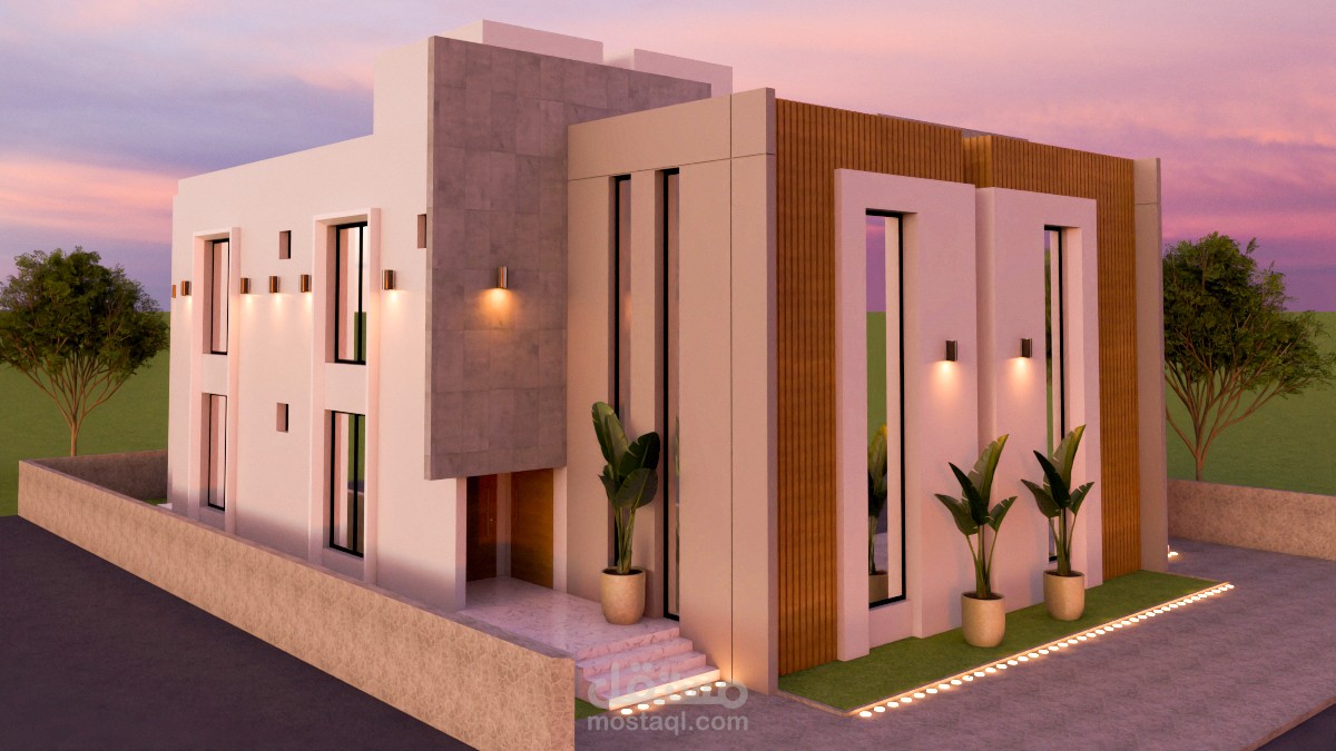 المشروع يتمثل في عمل رندر نهاري وليلي ل3D فيلا سكنية