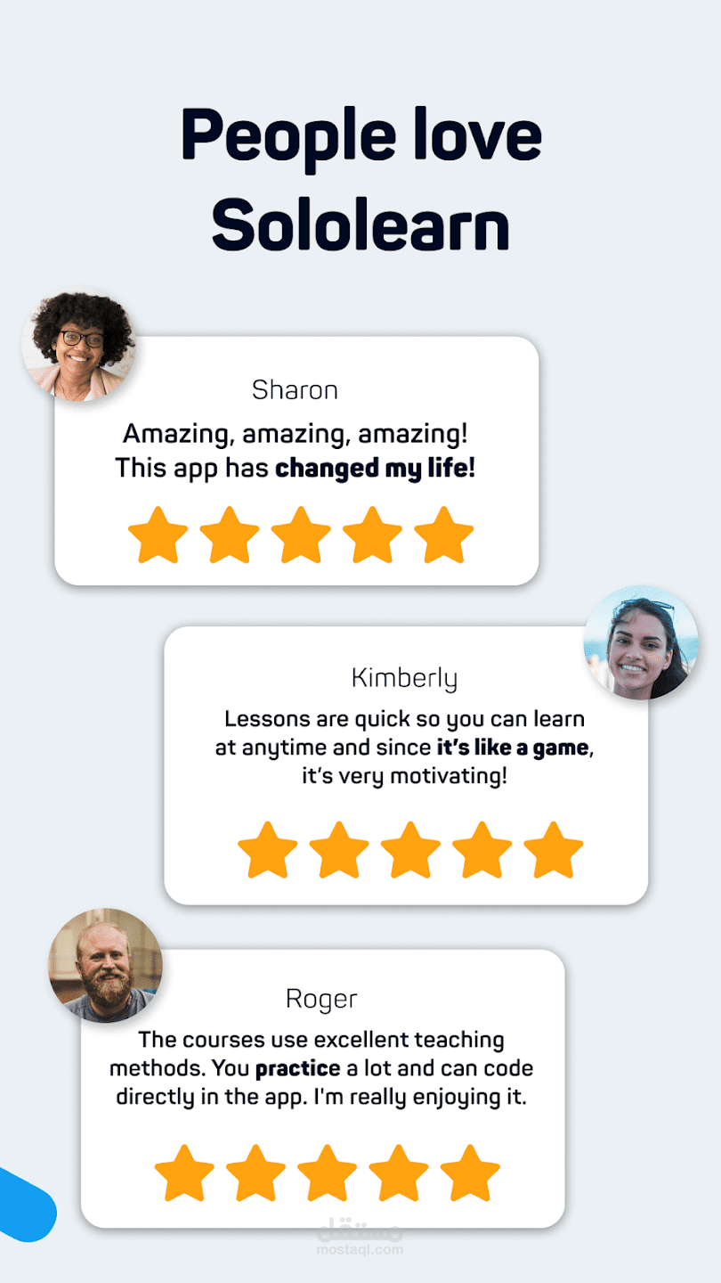 هل أنت مستعد لتعزيز مهاراتك في البرمجة وتعميق فهمك لكيفية البرمجة؟ مع Sololearn، يمكنك البدء في تعلم البرمجة بلغة Python وJavaScript وHTML وCSS وSQL والعديد من لغات البرمجة الأخرى على الفور. سواء كنت بدأت للتو رحلة البرمجة الخاصة بك أو تتطلع إلى تحسين معرفتك بالبرمجة، تقدم Soolearn مجموعة واسعة من الدورات التدريبية المصممة لمساعدتك على تعلم البرمجة بشكل فعال وبالسرعة التي تناسبك.