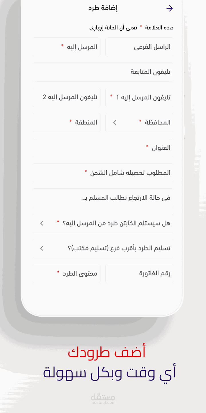 نوفر خدمة شحن محلية سهلة وسريعة باستخدام تطبيقنا الذى يربط العميل مباشرة بالكابتن والفرع الذى معه الطرد ويمكن من خلال التطبيق طلب الشحنات والمهمات ومتابعة حالات الطرود بشكل لحظى عن طريق الاشعارات المرسلة حين تسليم الطرد او تأجيله او ارتجاعه