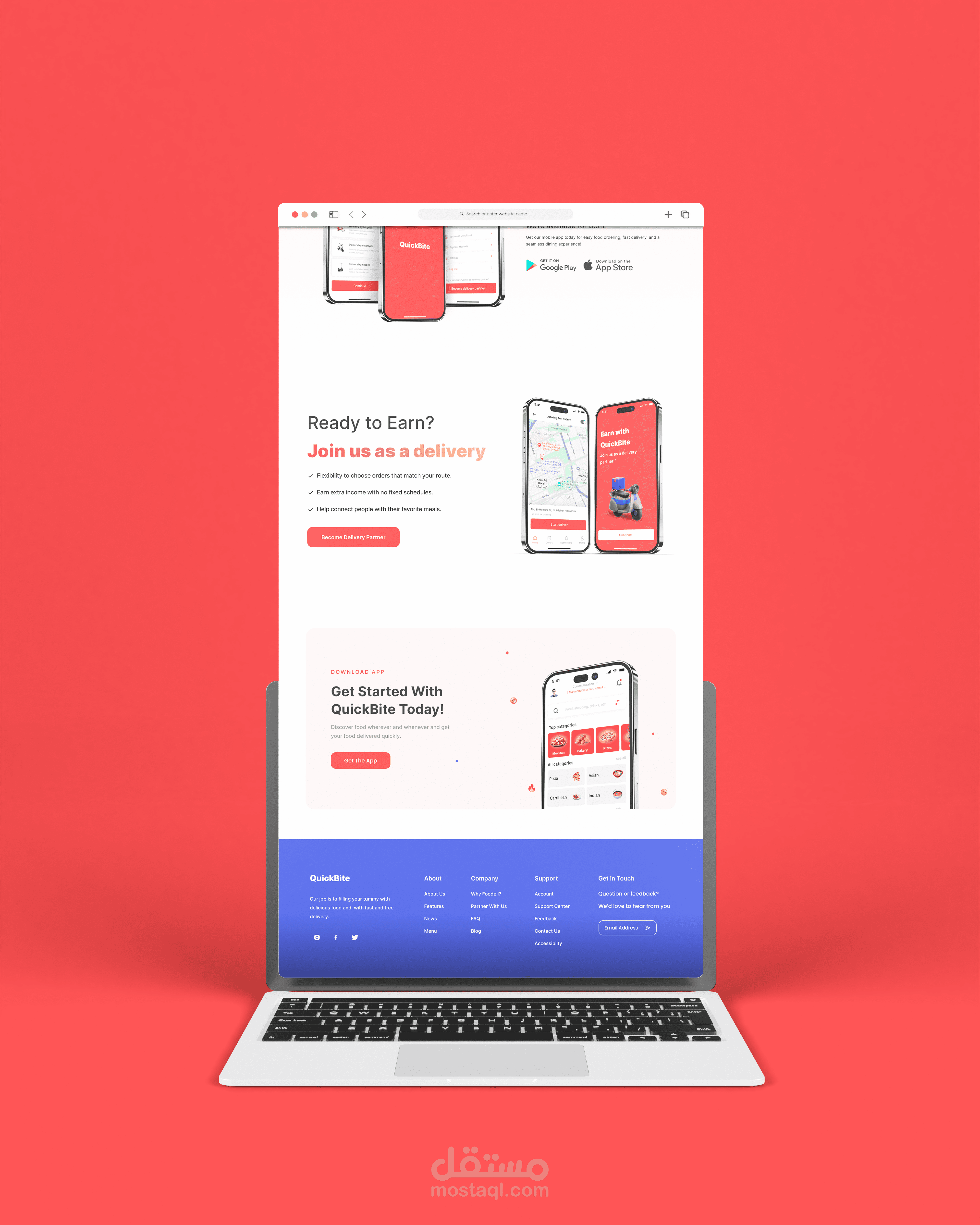 "صفحة هبوط لتطبيق توصيل الطعام."