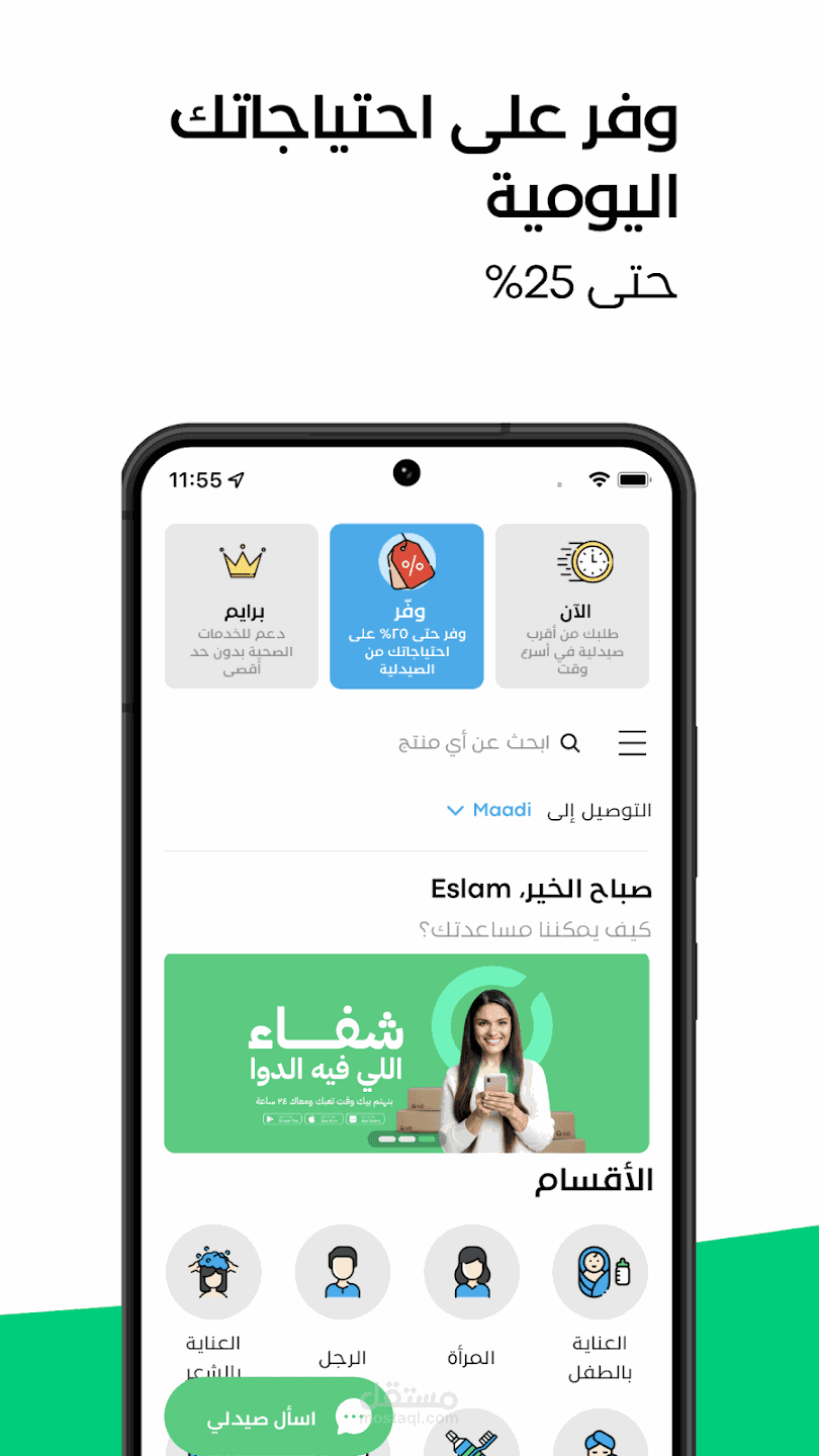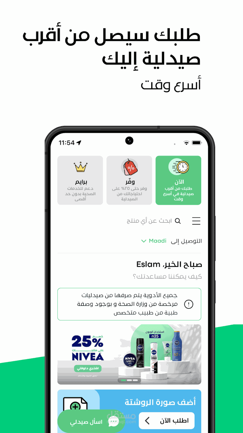تطبيق شفاء chefaa يسهل عليك الحصول على جميع احتياجاتك من الصيدلية سواء كانت طلب دواء أو منتج غير دوائي ليصلك حتى عندك فى أسرع وقت.