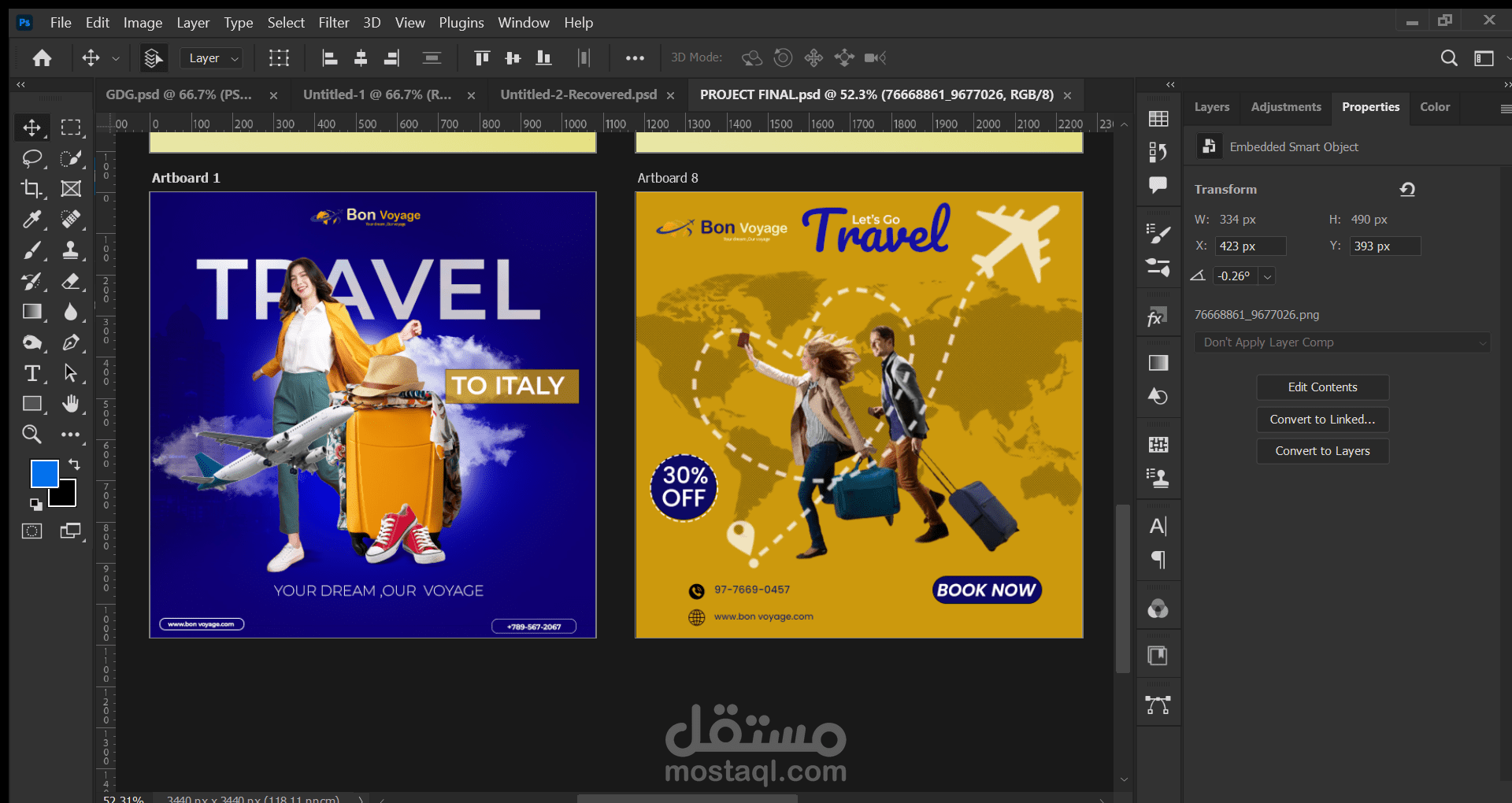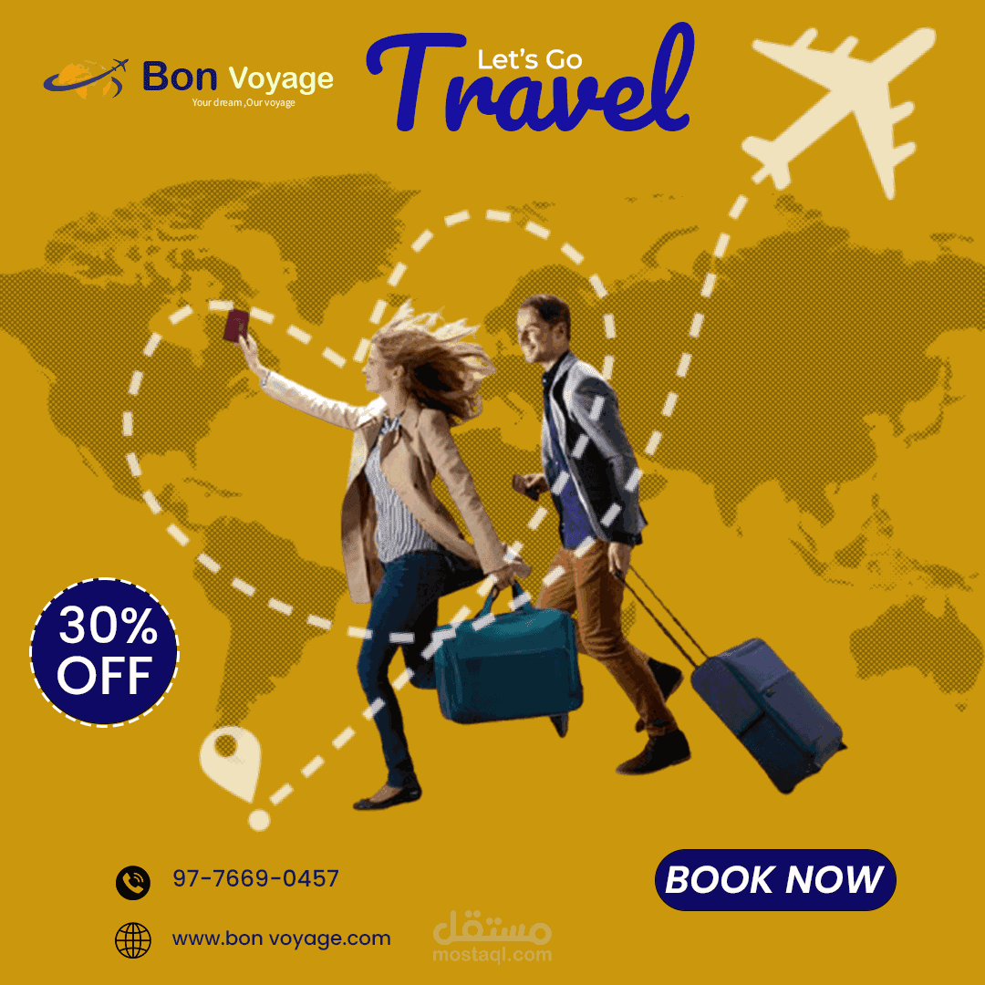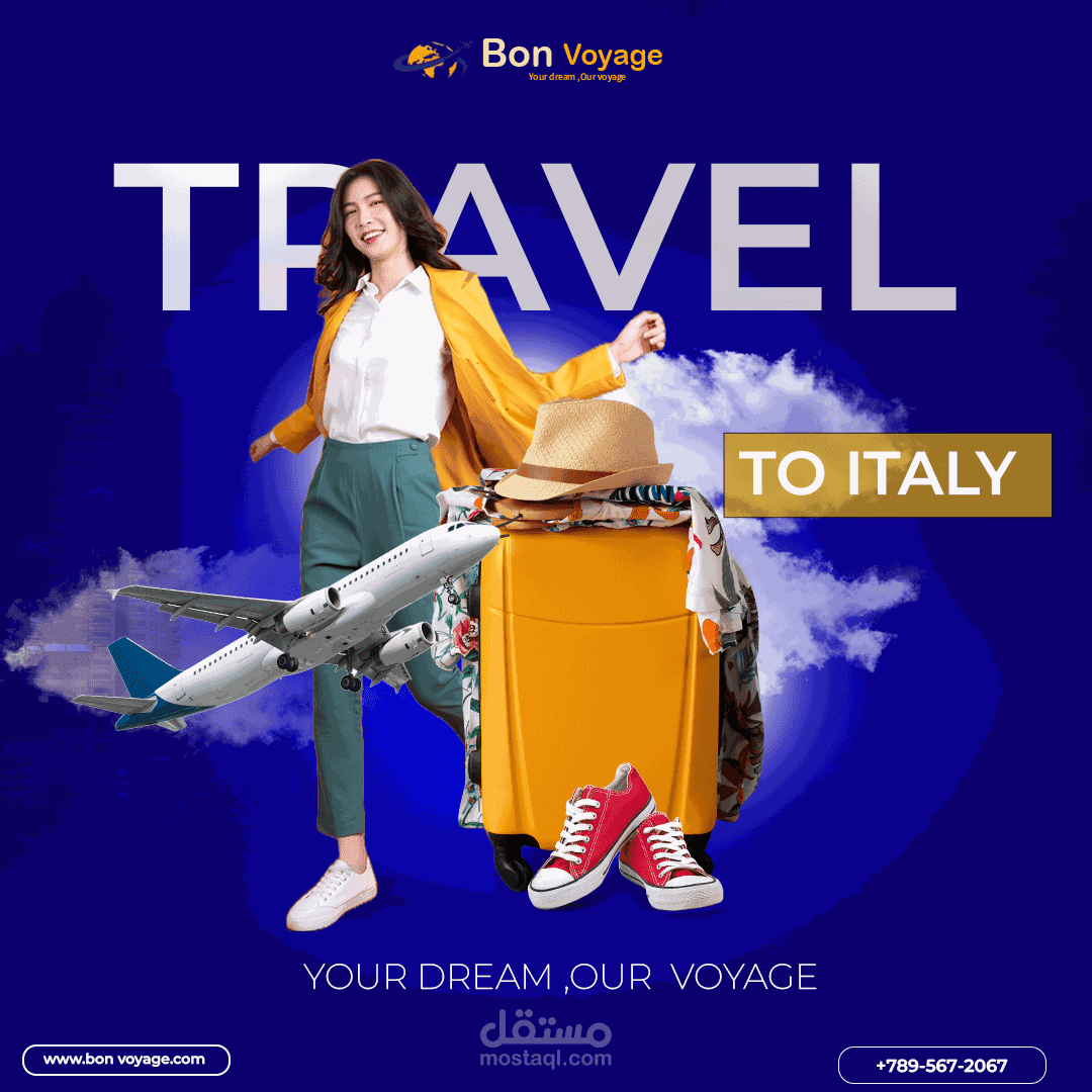 قمت بتصميم مشروع لشركة سياحية تحمل اسم "Bon Voyage"، وهي شركة متخصصة في تقديم رحلات سياحية مميزة تلبي احتياجات العملاء الباحثين عن تجارب سفر فريدة. شمل المشروع تصميم اثنين من البوسترات الإعلانية لتمثيل هوية الشركة بشكل مبتكر وجذاب.