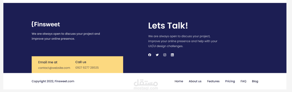 هذا المشروع يعتبر واجهة لعرض الأعمال التي يمكننا القيام بها لمساعدة الشركات الناشئة على بناء حضور قوي على الإنترنت. الأزرار التفاعلية والروابط تجعل التنقل في الموقع سهل وسلس، مما يعزز تجربة المستخدم.