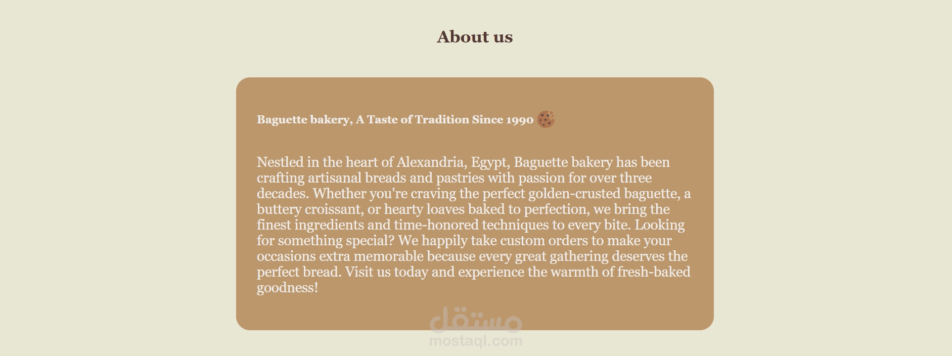 صفحة هبوط Landing page لمحل مخبوزات مكونة من 4 سكاشن