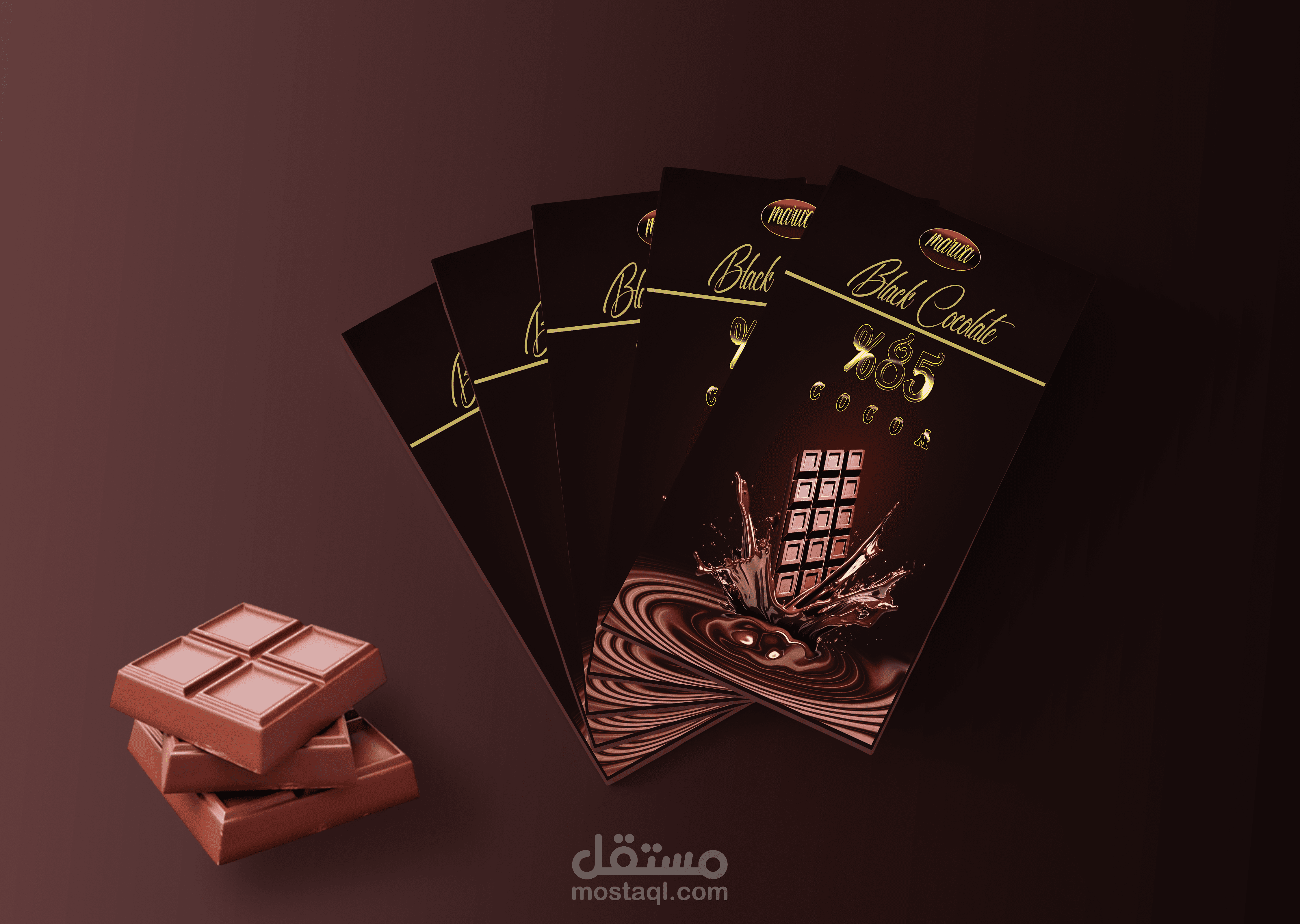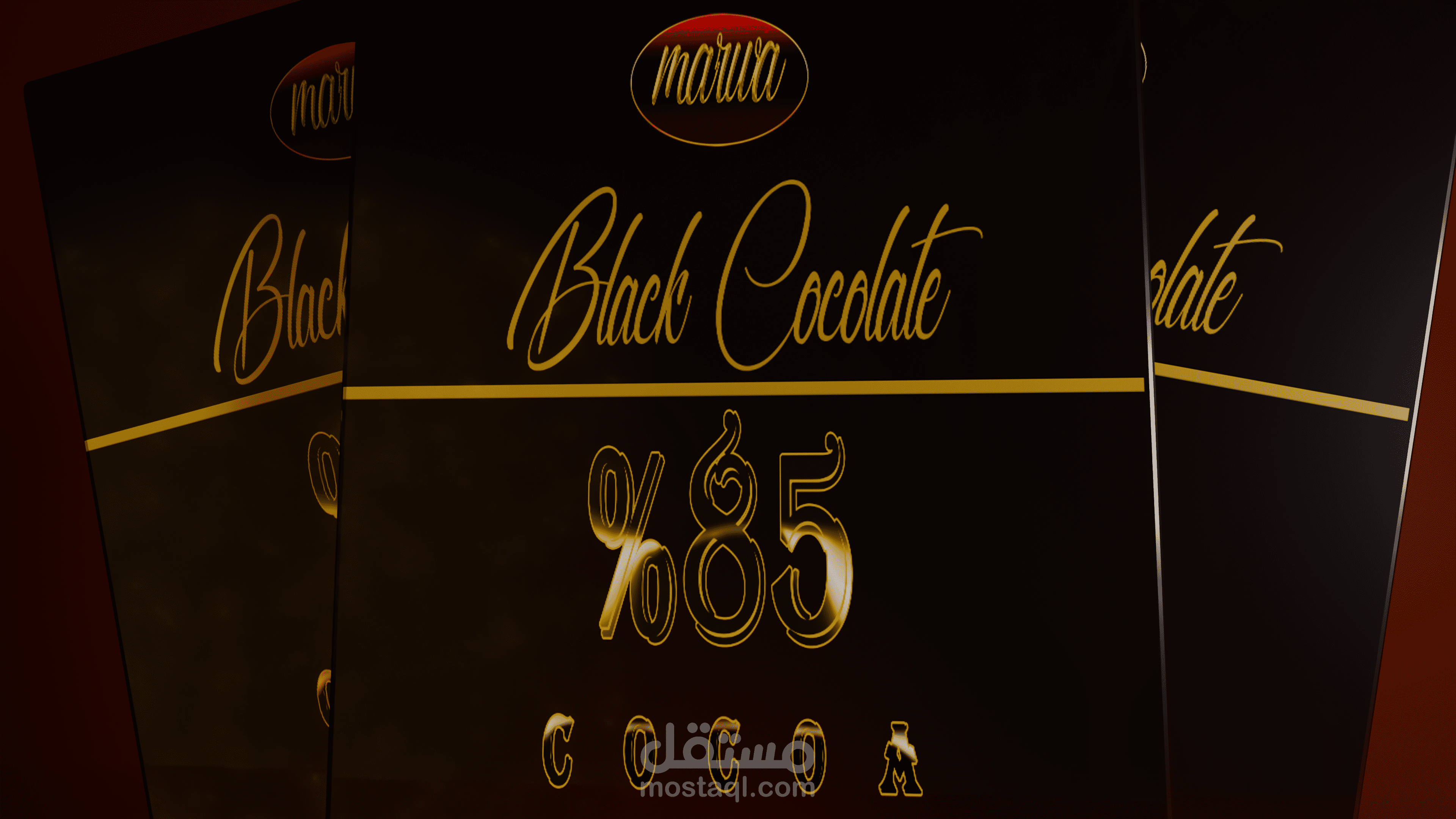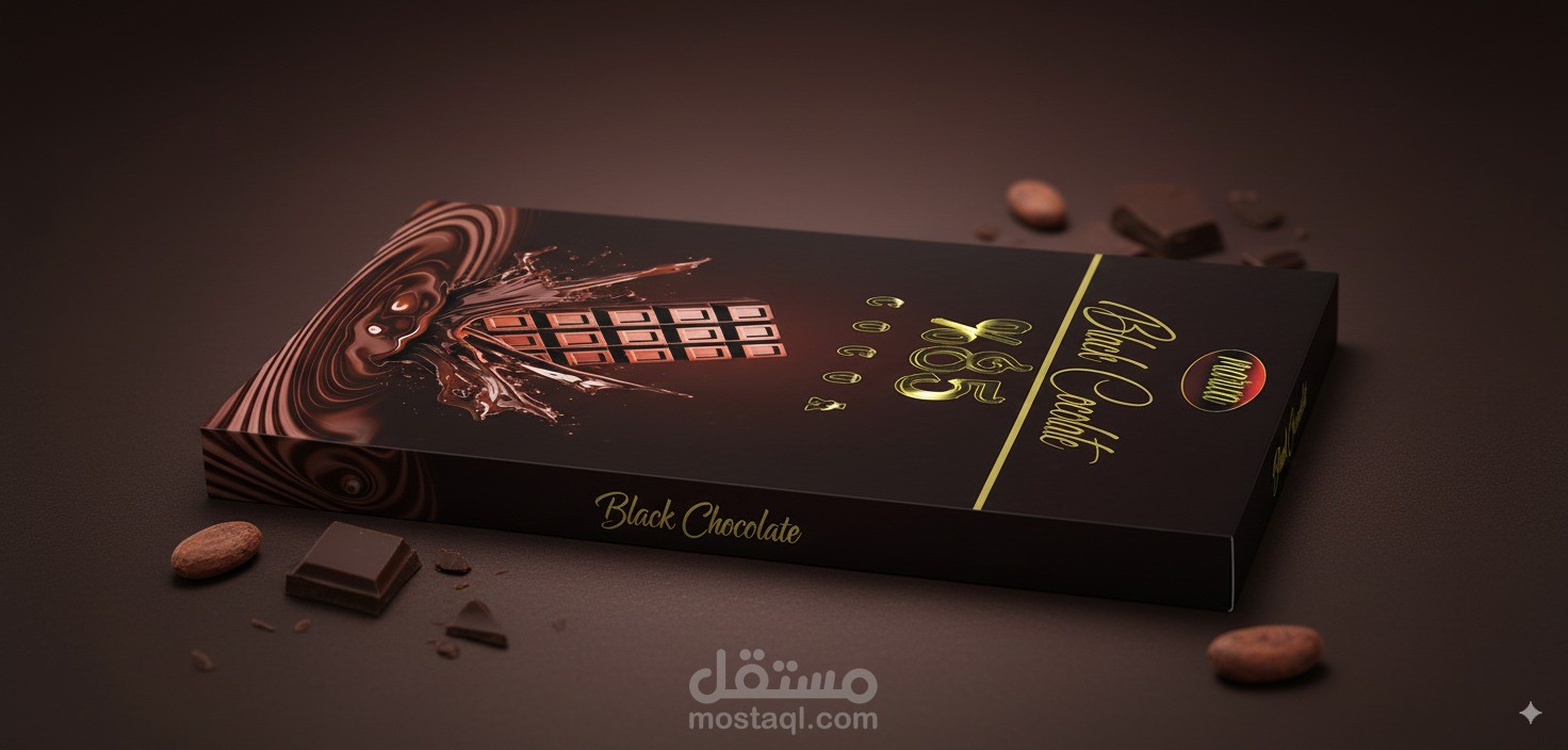 ثالث عنصر: اسم المنتج Black Chocolate بخط سكريبت أنيق.