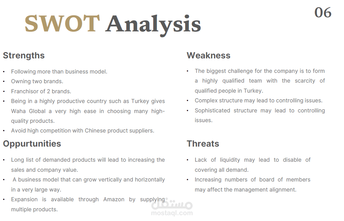 The business Plan aim to establish investment companies under one umbral to ensure the availability of the highest professional standard when we study and identify the investment activities which will work based on professional and effective management, those companies will provide the products and services to gain their customers' satisfaction, furthermore, the success of those companies and their achievements in term of value and reputation is the ultimate economic goal to gain the satisfaction of their investors and shareholders..
