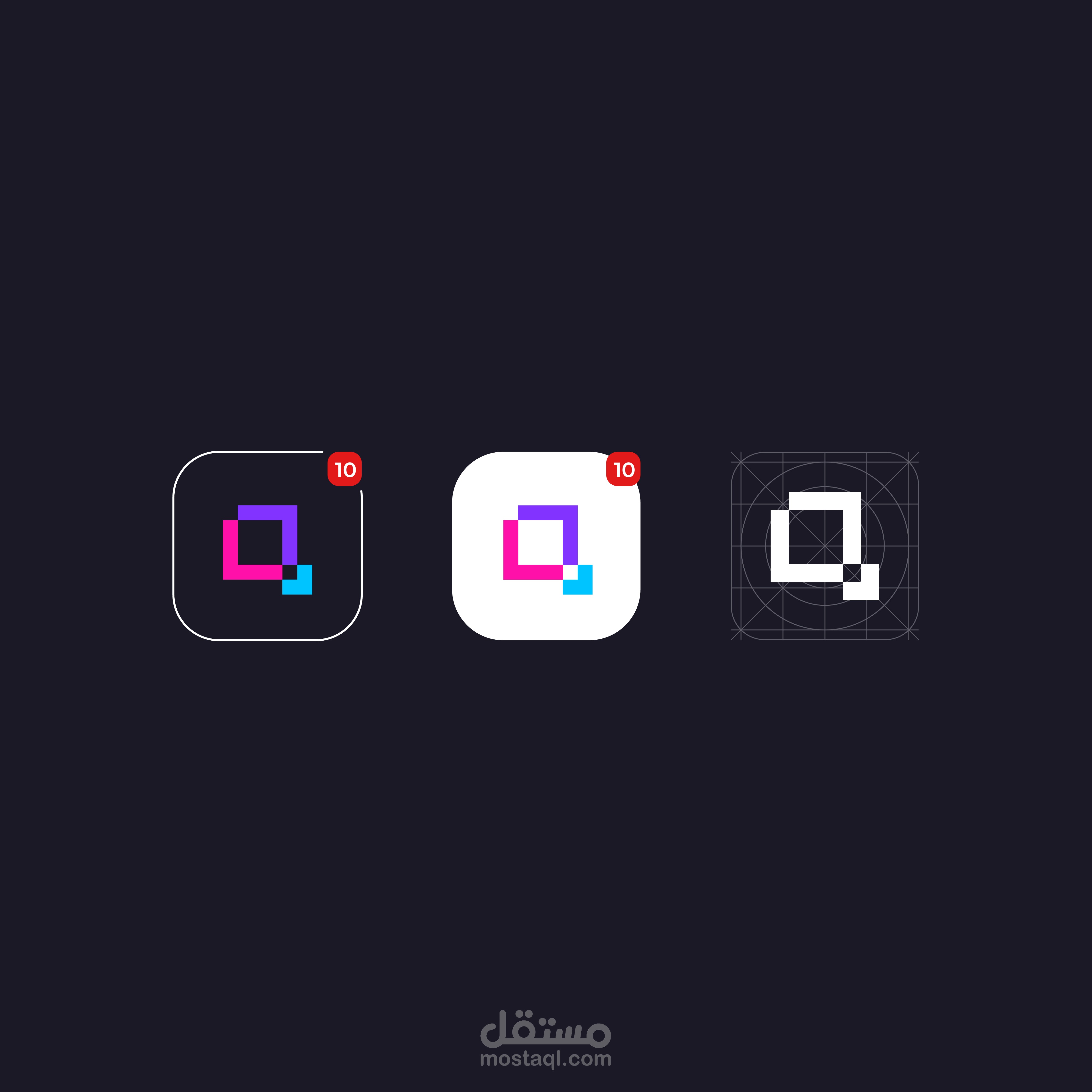 الإطار المربع المفتوح يعكس التفكير الديناميكي والانفتاح على الأفكار الجديدة، بينما يُظهر الترابط بين الإبداع والدقة البرمجية.
