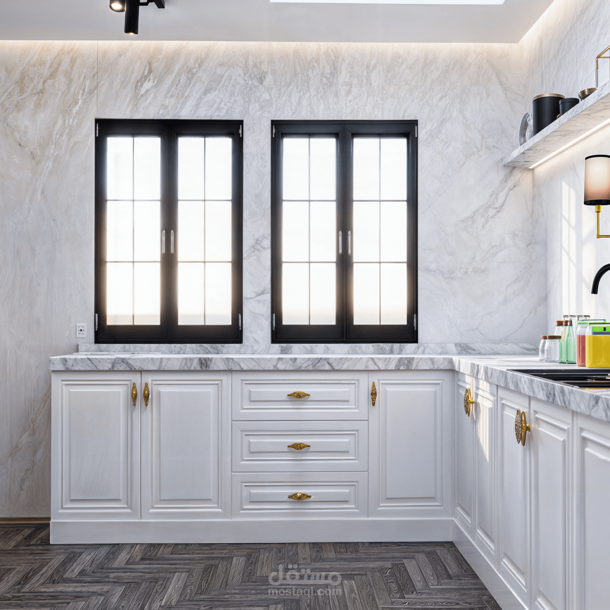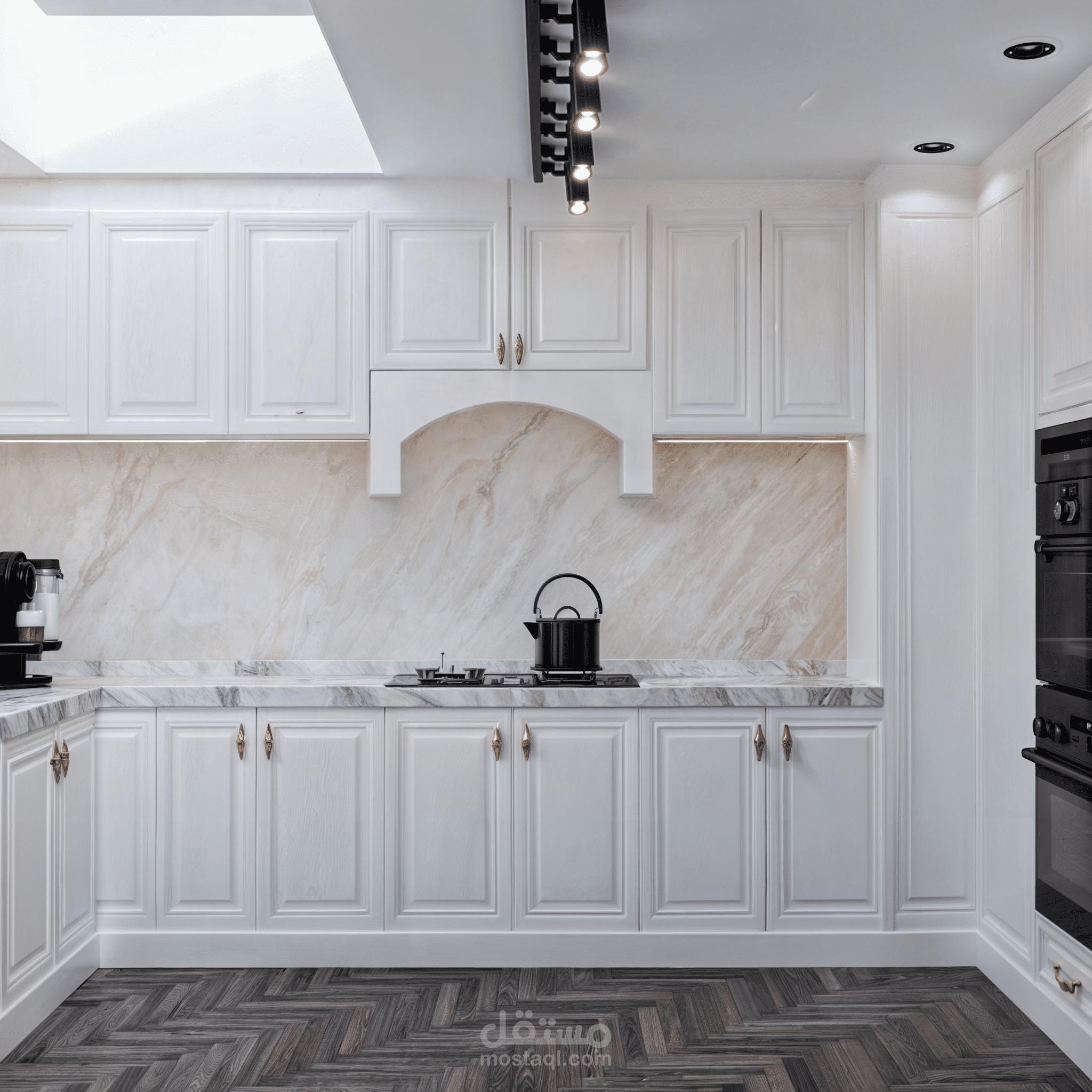 تصاميم كلاسيكي لمطبخ يجمع بين الاناقه والالوان الهادئة