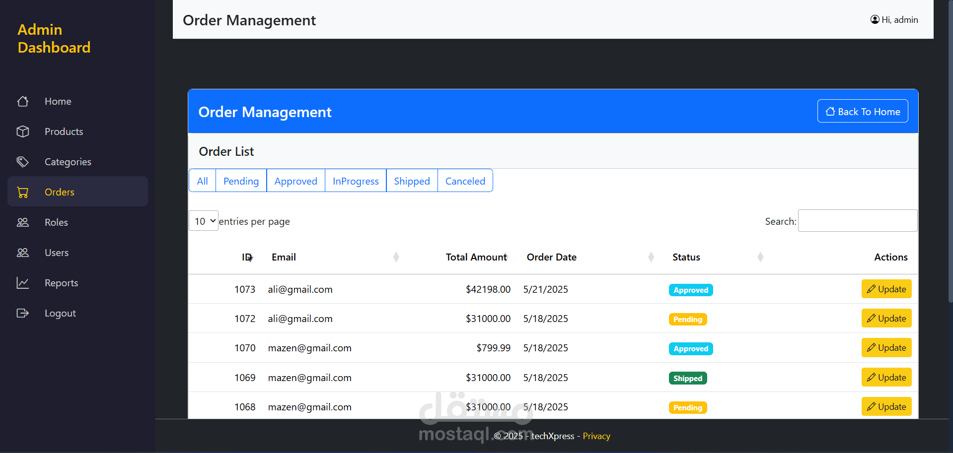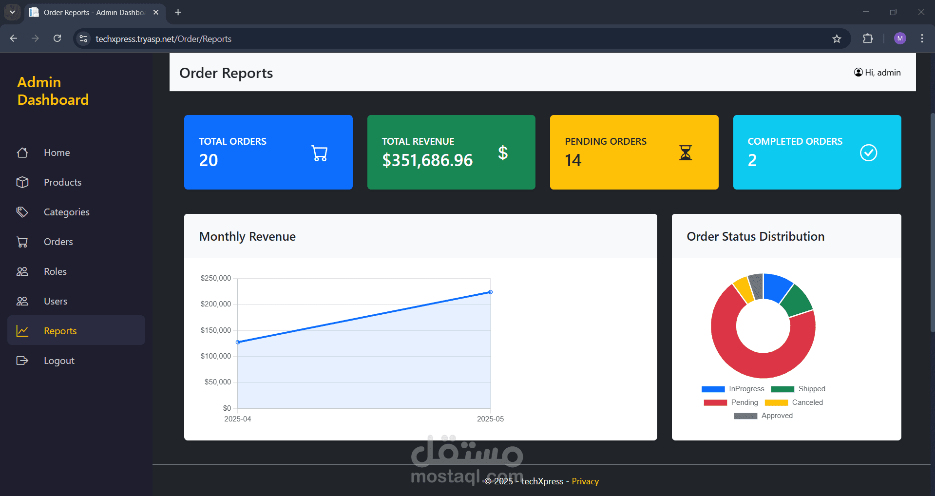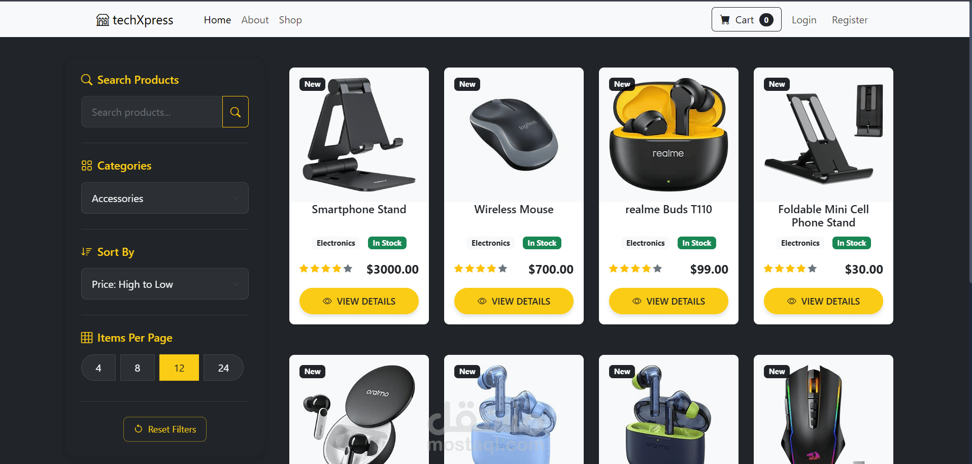 TechXpress هو منصة تجارة إلكترونية متكاملة مصممة خصيصًا لبيع الأجهزة الإلكترونية. تتيح للمستخدمين تصفح المنتجات، إضافتها إلى عربة التسوق، وإتمام عملية الشراء من خلال integrated payment gateway. كما تتضمن المنصة admin panel لإدارة المنتجات، الفئات (categories) والطلبات (orders).