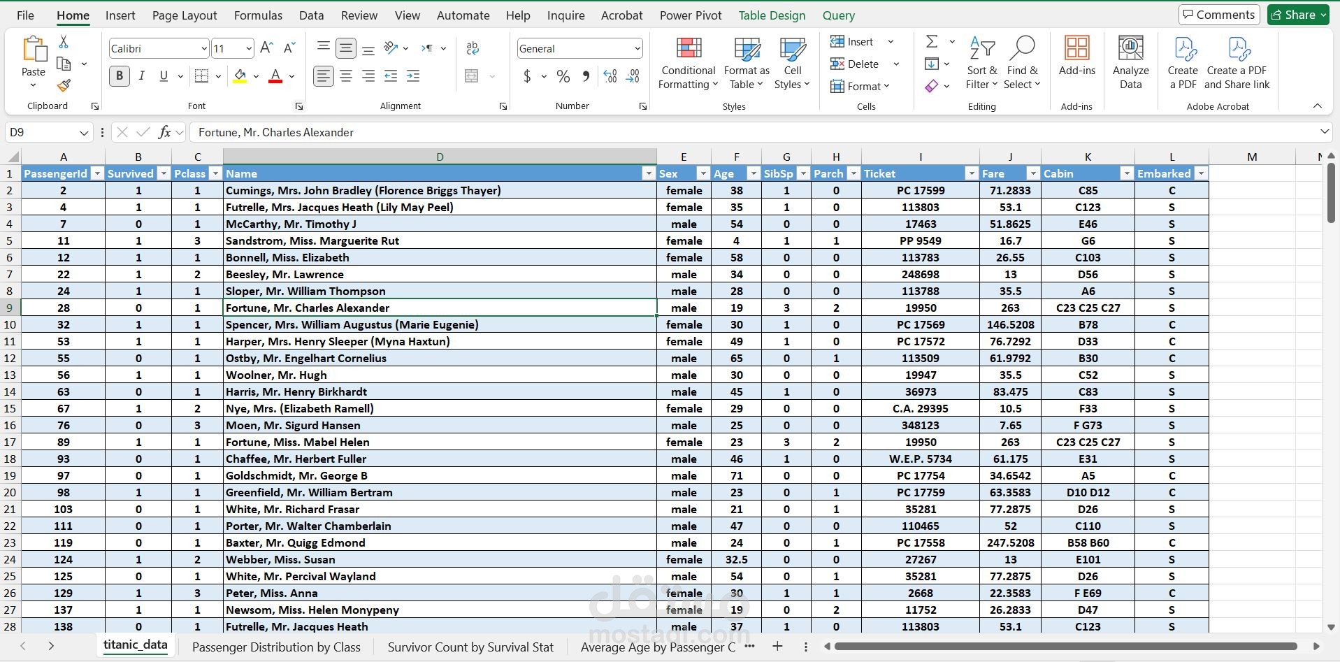 This dataset is ideal for analyzing survival patterns across different passenger classes, genders, and age groups.