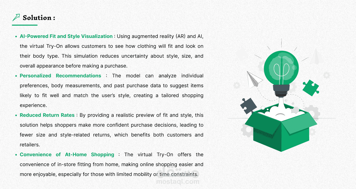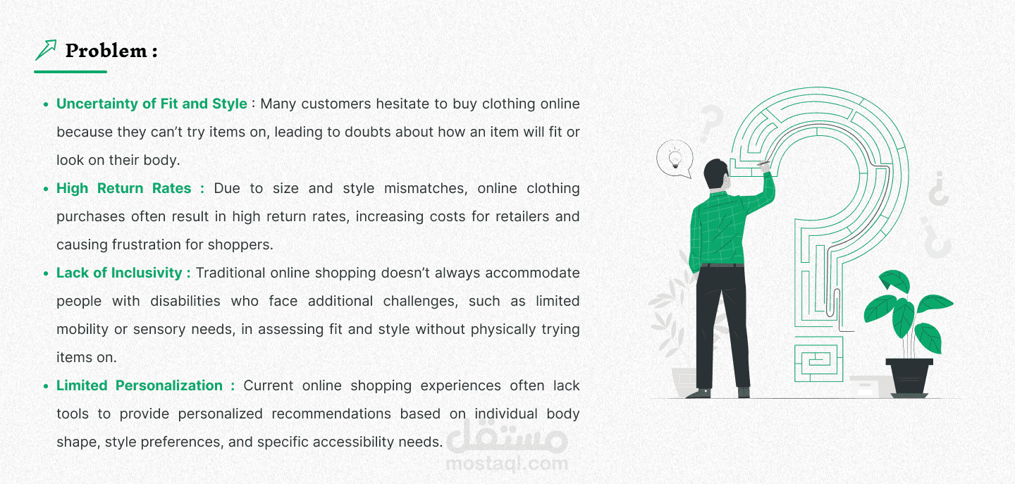 - تحديد الأهداف الرئيسية للتطبيق، مثل تسهيل الوصول وتحسين تجربة اختيار الملابس.