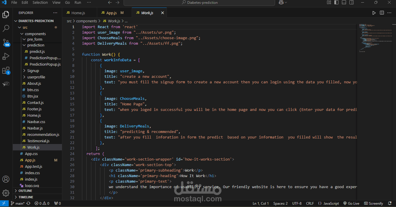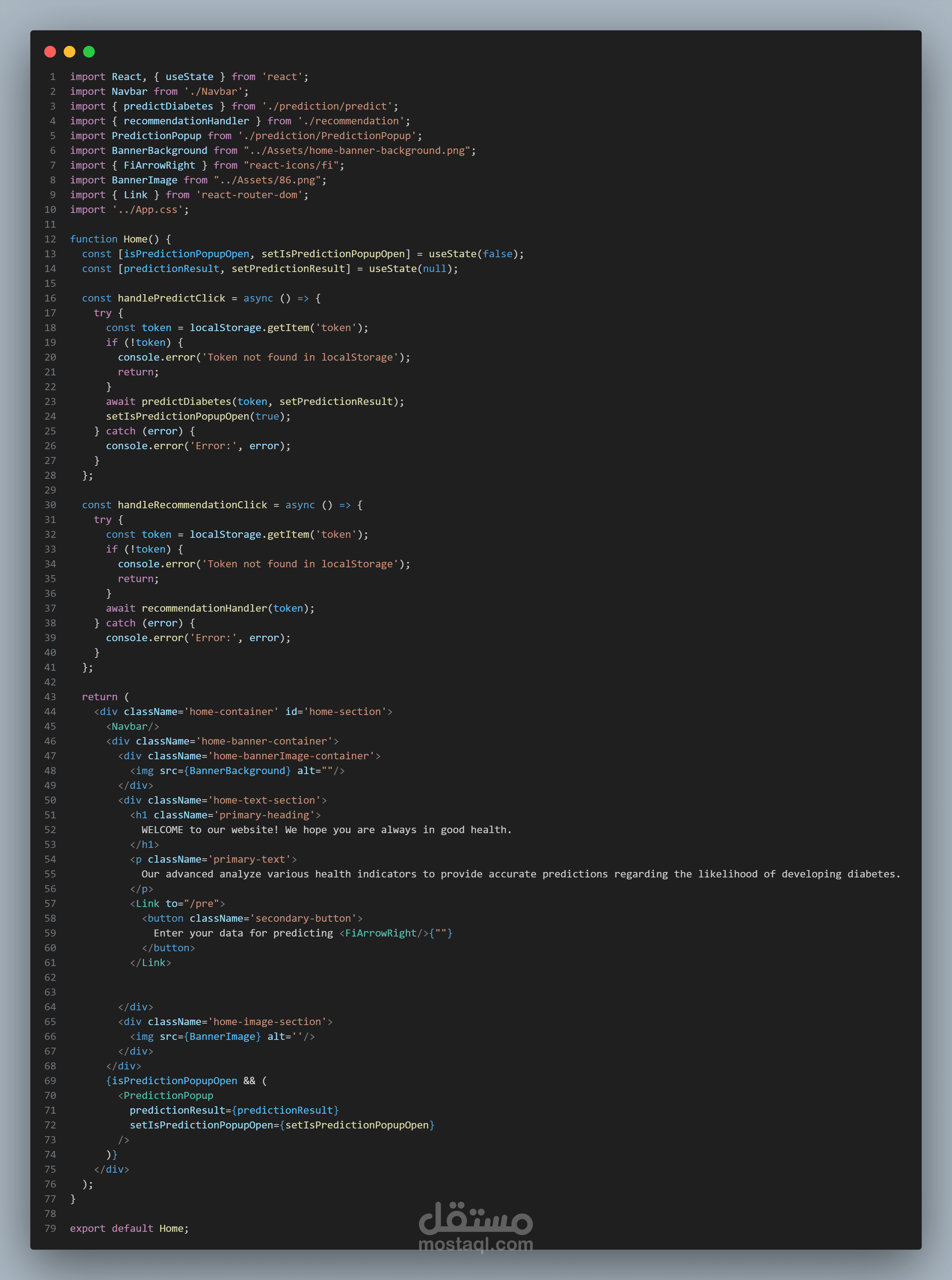 "Diabetes Prediction" هو مشروع ويب تفاعلي مصمم باستخدام React.js وCSS ، يهدف إلى مساعدة المستخدمين في التنبؤ باحتمالية الإصابة بمرض السكري بناءً على البيانات الصحية المدخلة.