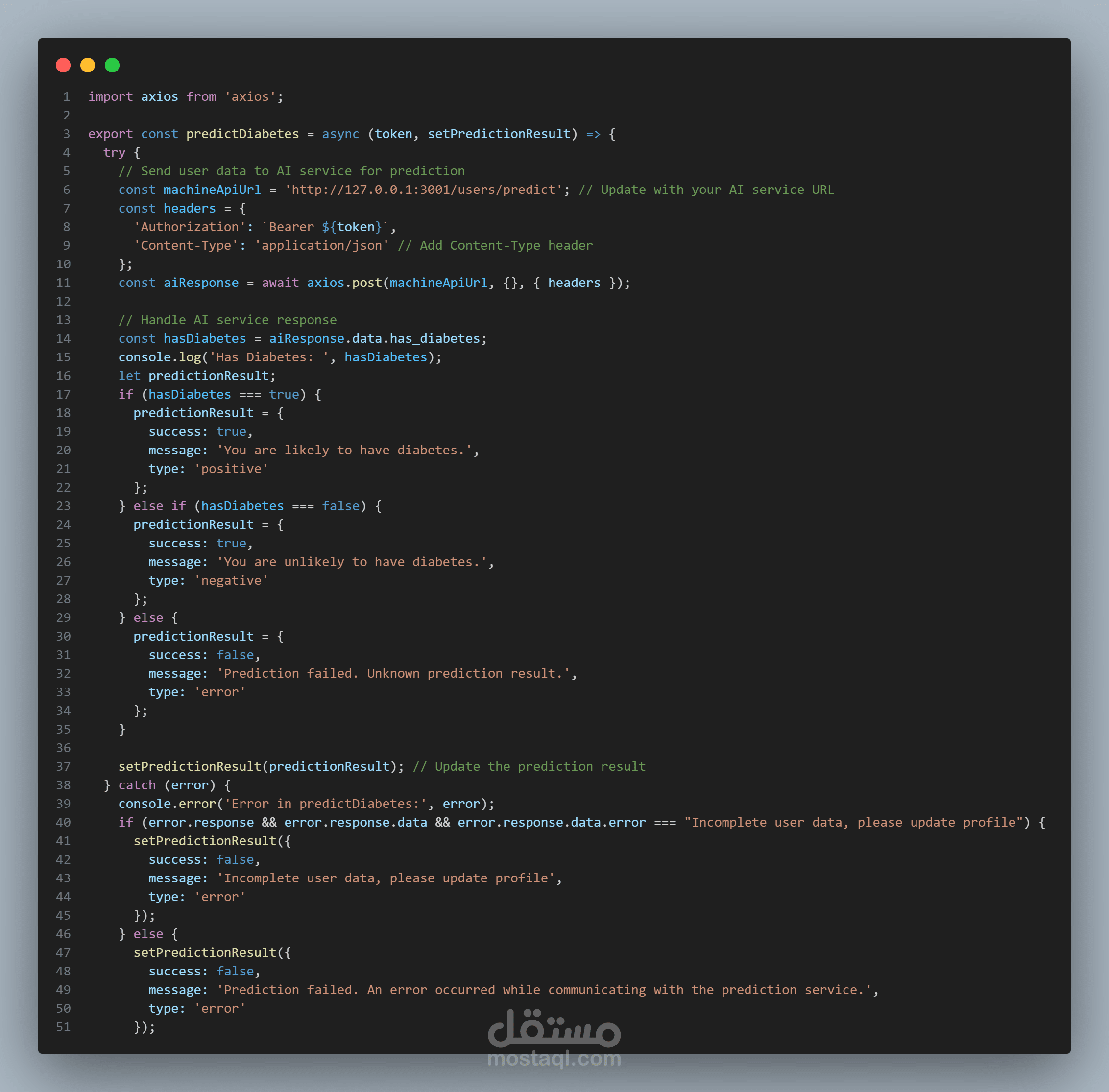 يهدف هذا المشروع إلى توفير أداة سهلة للمستخدمين لتقييم مخاطر الإصابة بمرض السكري باستخدام المعلومات الطبية المتاحة، وبالتالي تمكينهم من اتخاذ قرارات صحية مبكرة بناءً على التنبؤات الدقيقة التي يقدمها النظام.