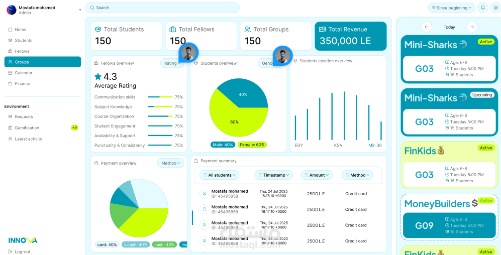 عملت كـ Back-End Developer في مشروع Innova Platform، وهي منصة تعليمية رقمية متقدمة تستهدف الطلاب وأولياء الأمور والمدرسين. كنت مسؤول عن تصميم وتنفيذ حلول خلفية (Back-End Solutions) قابلة للتوسع ومرتكزة على معايير الأمان باستخدام تقنيات .NET.