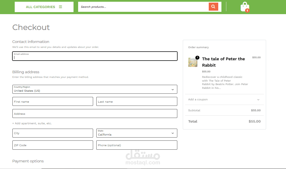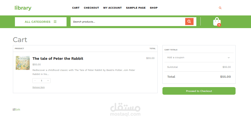 متجر لبيع الكتب صمم باستخدام ال WordPress و ال woo commerce Plugin و wp Theme