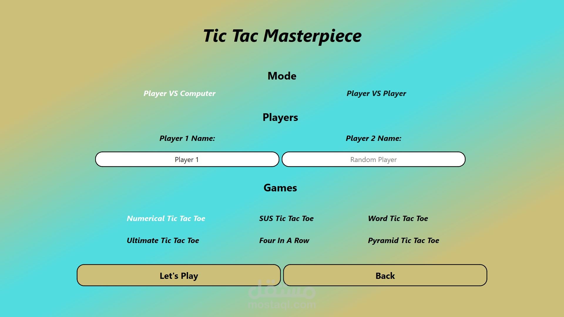 تنفيذ حديث وتفاعلي للعبة الكلاسيكية (Tic Tac Toe) بواجهة رسومية (GUI). يمكنك اللعب ضد صديق أو تحدي لاعب عشوائي يتحكم فيه الكمبيوتر لاختبار مهاراتك في الاستراتيجية واتخاذ القرار!