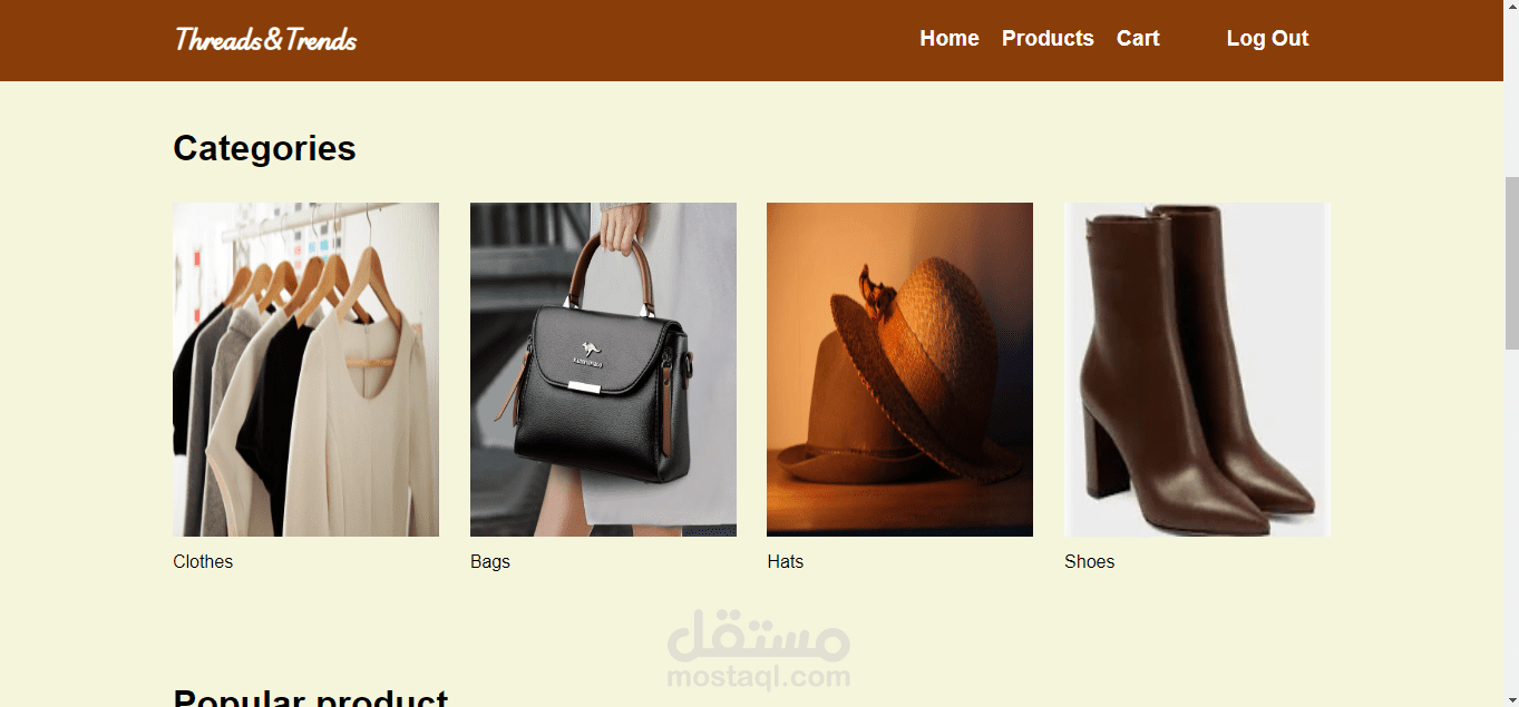 2-صفحة الهوم تحتوى فى البداية على slider ثم categories التى يوفرها المتجر.