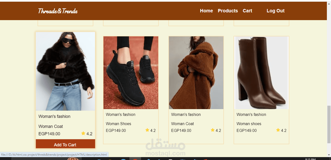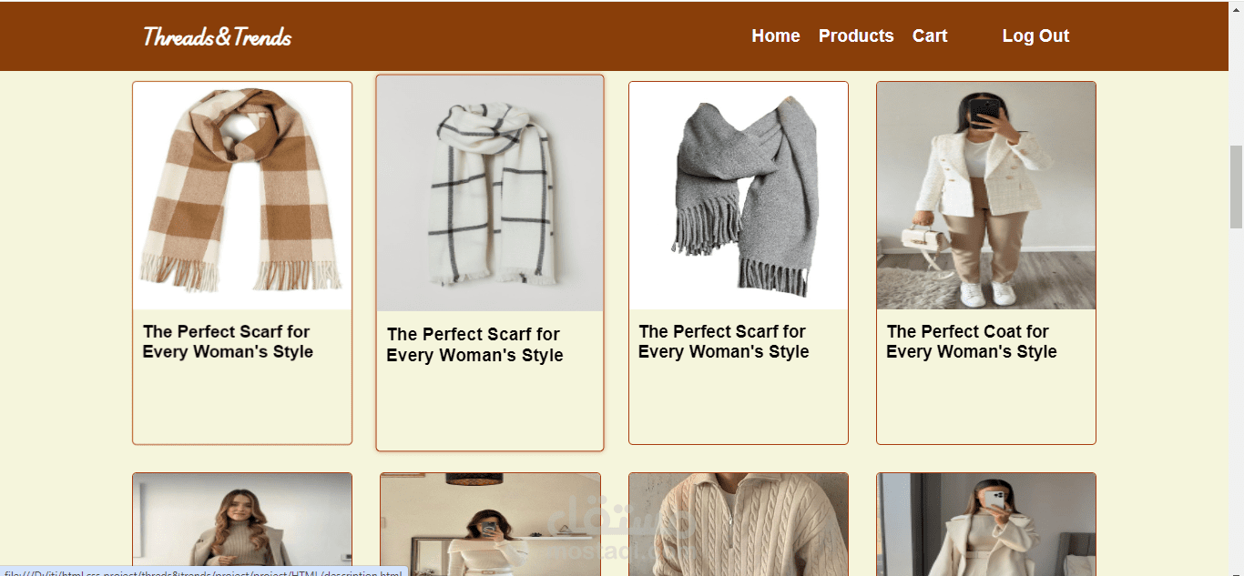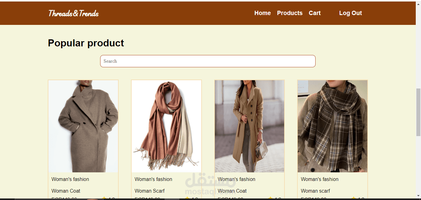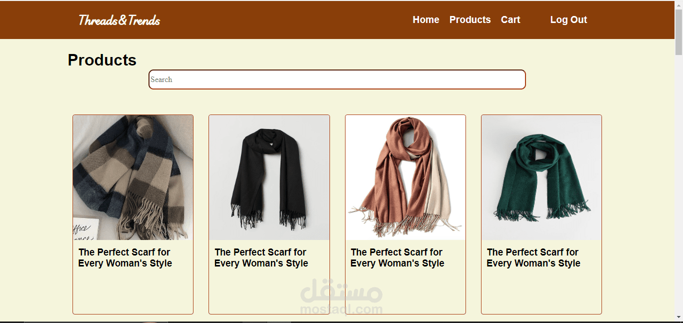 4-صفحة المنتجات products : بها جميع المنتجات كما تتولى على سيرش لتسهيل الوصول للمنتج المطلوب