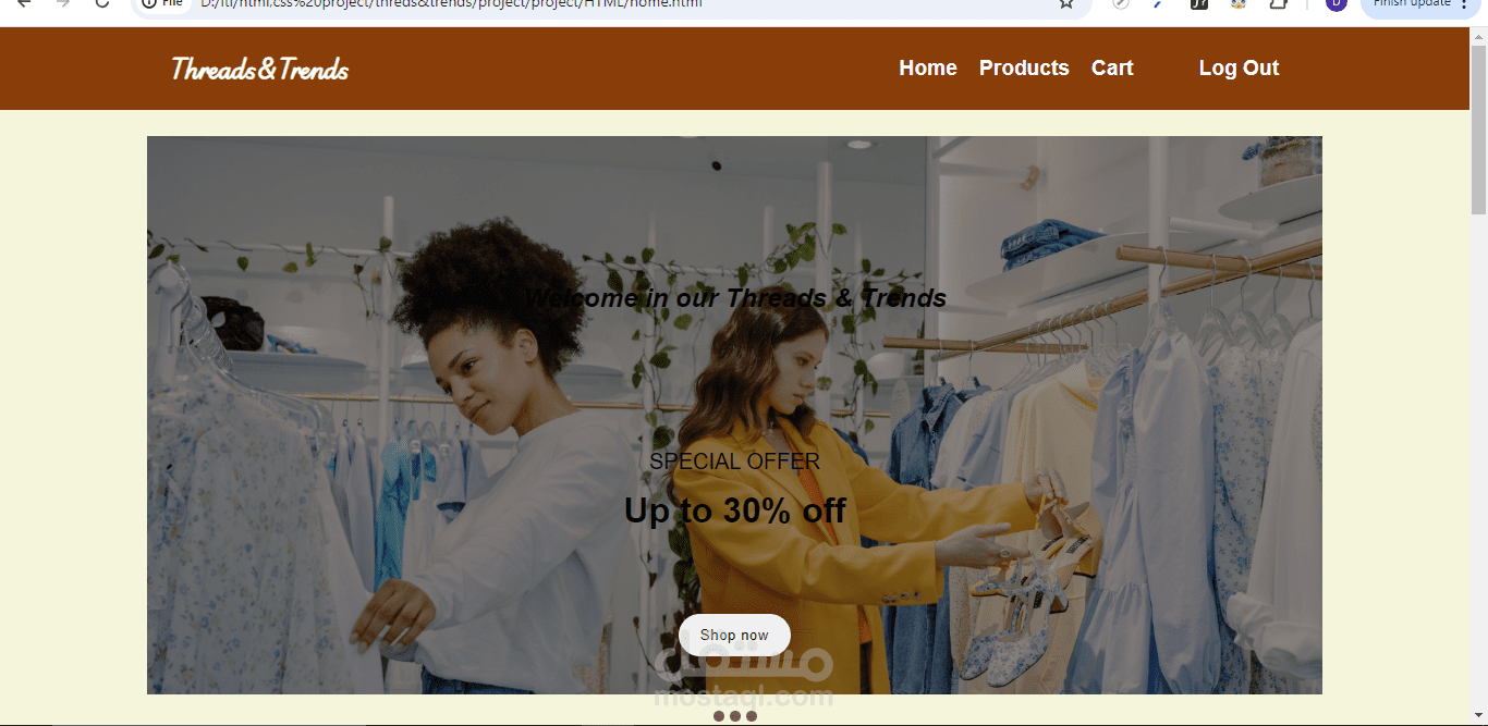 تصميم وتطوير متجر إلكتروني e-commerceلبيع الملابس باستخدام تقنيات,react HTML، CSS، وJavaScript، بحيث يكون الموقع جذابًا وسهل الاستخدام. المشروع يستهدف إنشاء واجهة مستخدم متكاملة ومميزة لعرض المنتجات وإدارة عمليات الشراء بطريقة سلسة ومريحة.